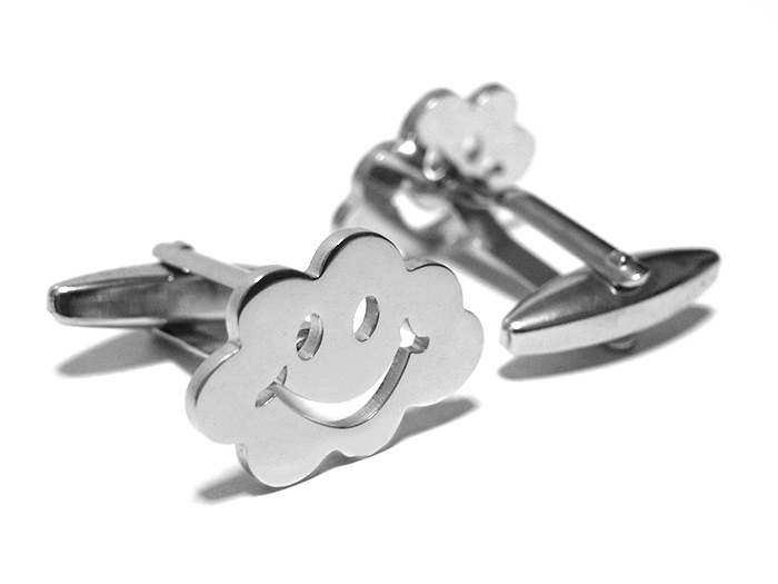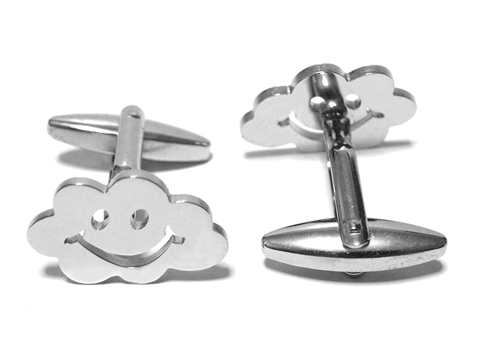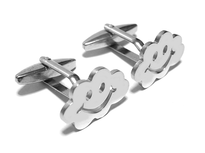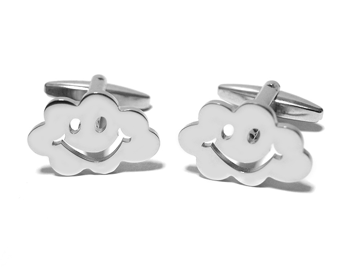 【カフス ボタン/カフリンクス】雲 クラウド スマイル スマイリー 笑顔 軽量 プレート シルバー cuf-0575