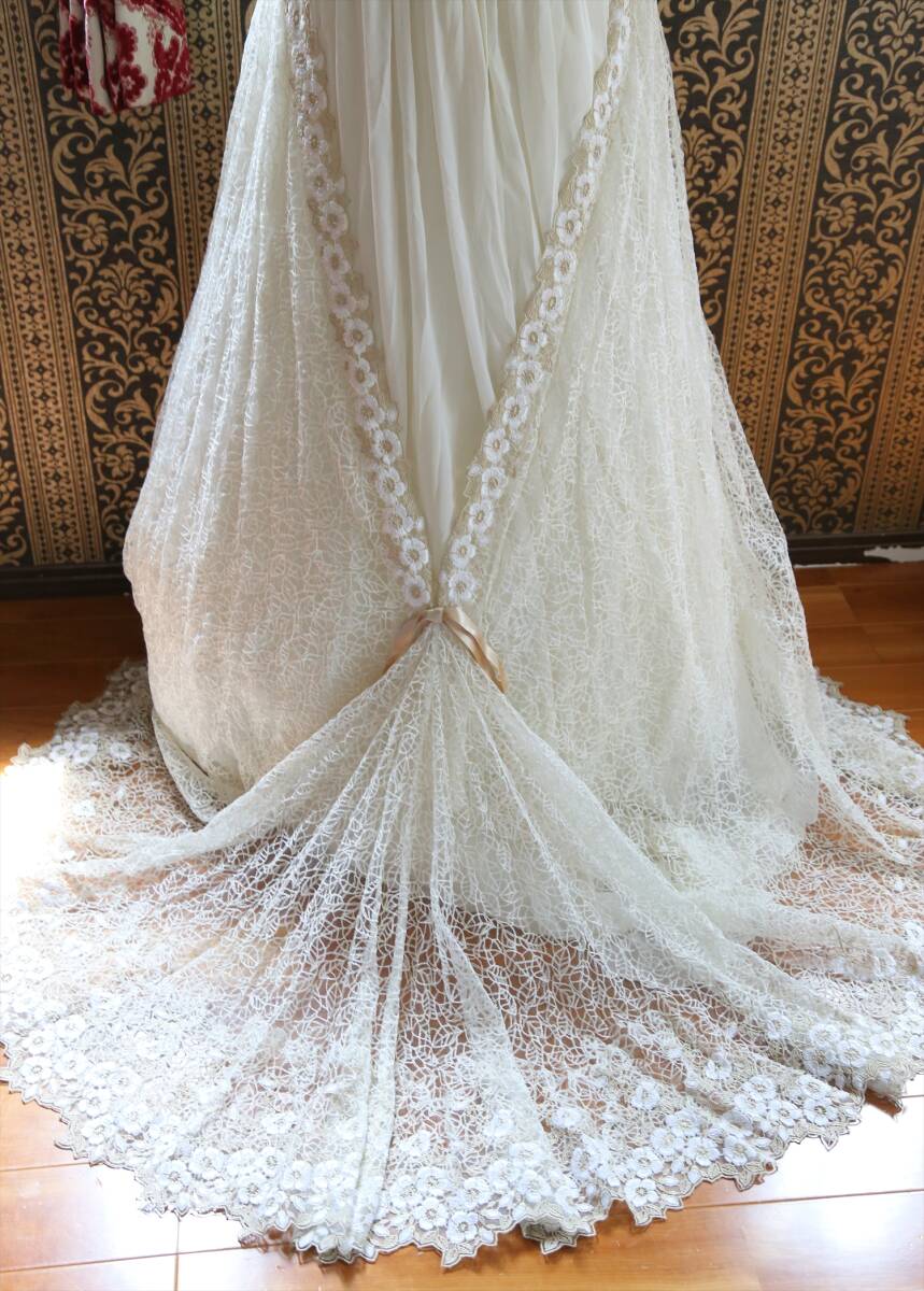実寸サイズはバスト約84cm、ウエスト約64cm、前中心から裾までの丈約140cm、脇下から裾までの丈140cm、後ろ丈約156cm、多少の誤差はご了承ください