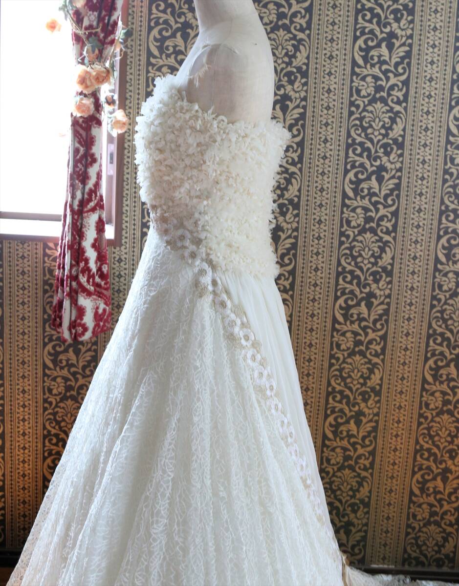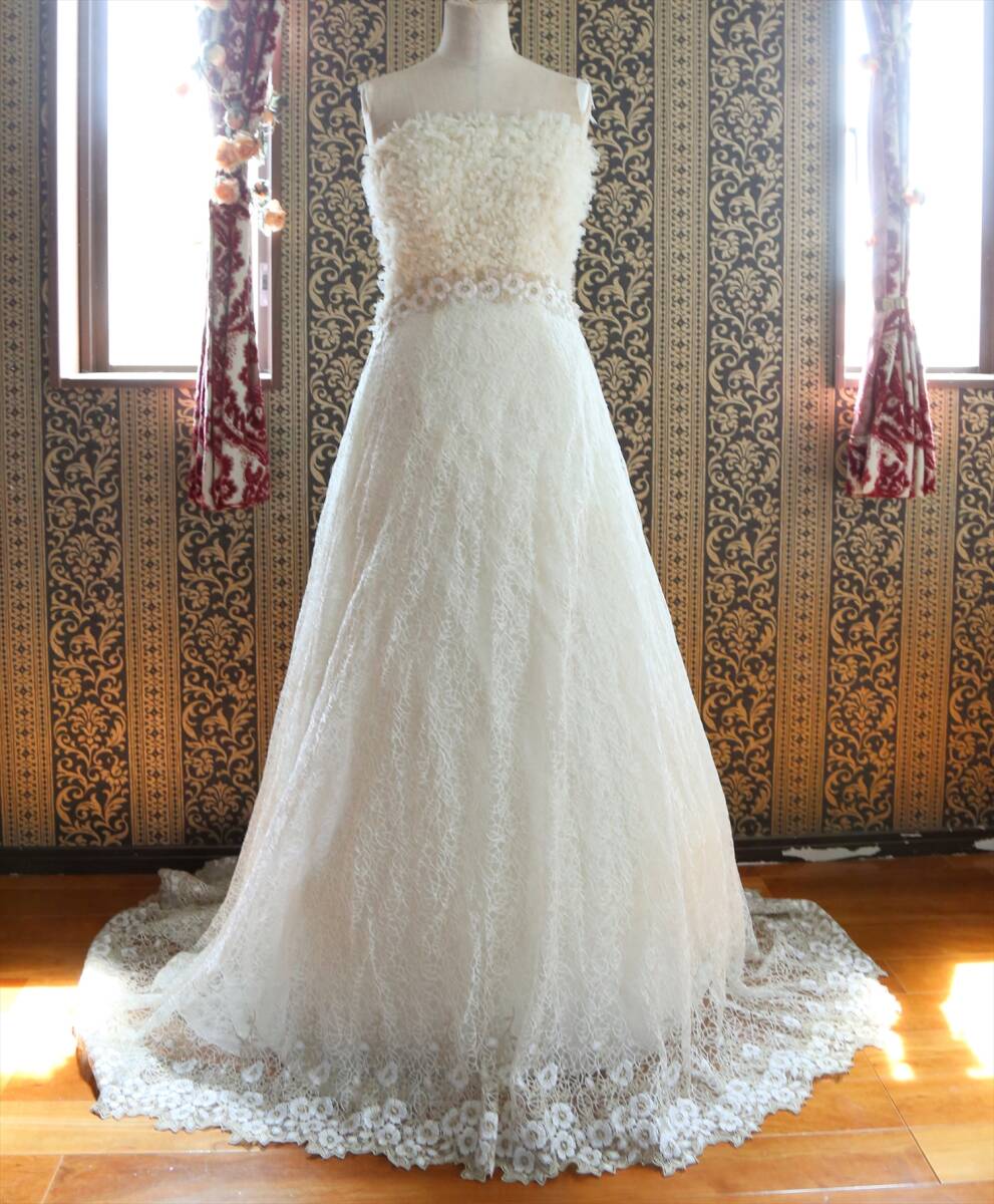 KABUカブインターナショナル美しいスレンダーライン高級ウエディングドレス9号Mサイズキナリ
