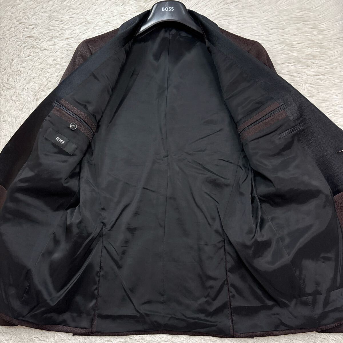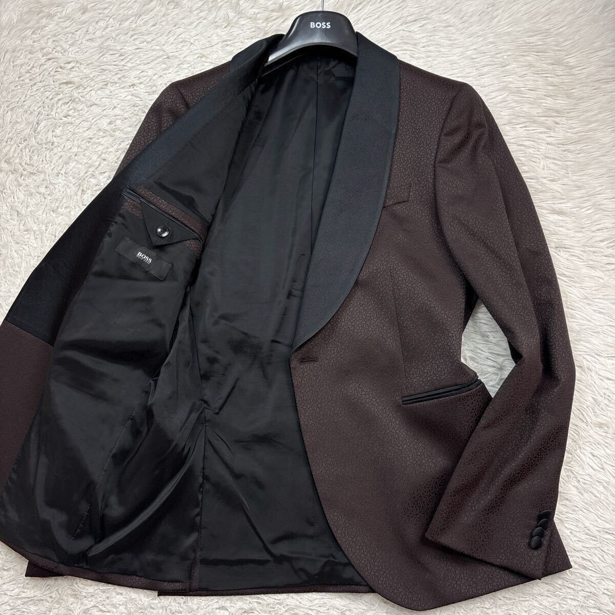HUGO BOSS ヒューゴボス 現行 タキシード テーラードジャケット シルク100 STRETCH TAILORING SLIM FIT メンズ サイズ50 ブラウン 総柄