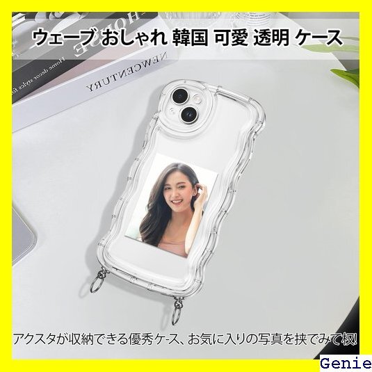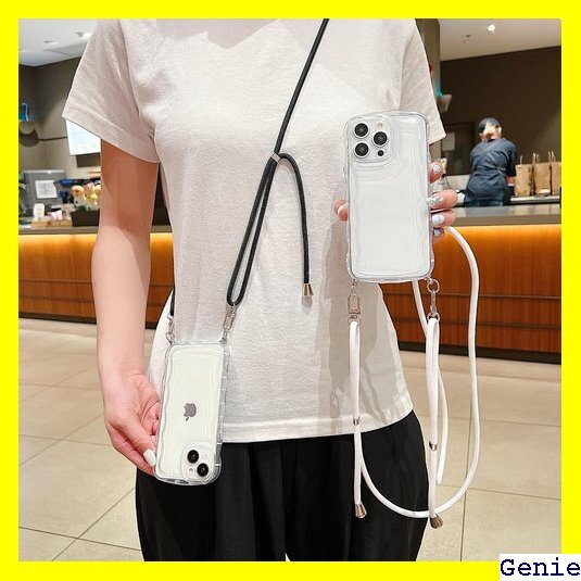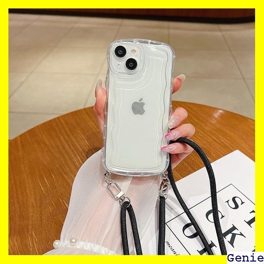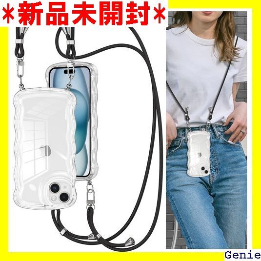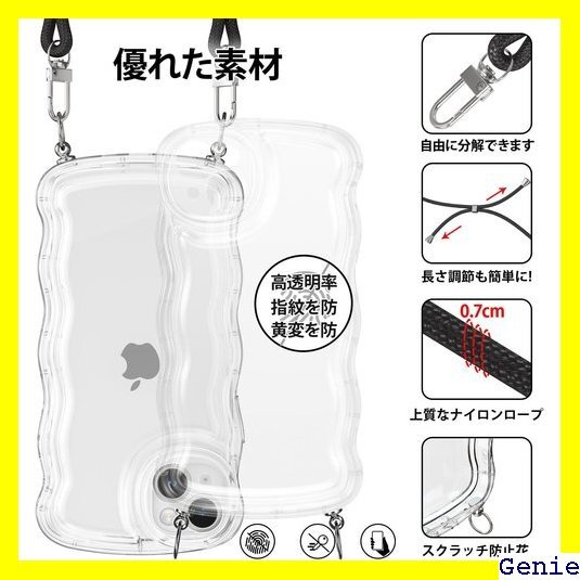 QLTYPRI ケース iPhone 15 用ケース クリア TPUカバー 調節可能な ショルダー 肩がけ 首掛け 紐付き 斜めがけ ウェーブ おしゃれ 韓国 可愛い iPhone15用ケース アクスタ収納 透明 薄型 軽量 耐衝撃 スマホケース ワイヤレス充電対応 ストラップホール付き アイフォン 15 ケース 6.1インチ 対応 23