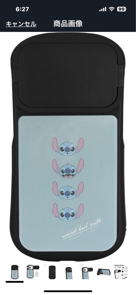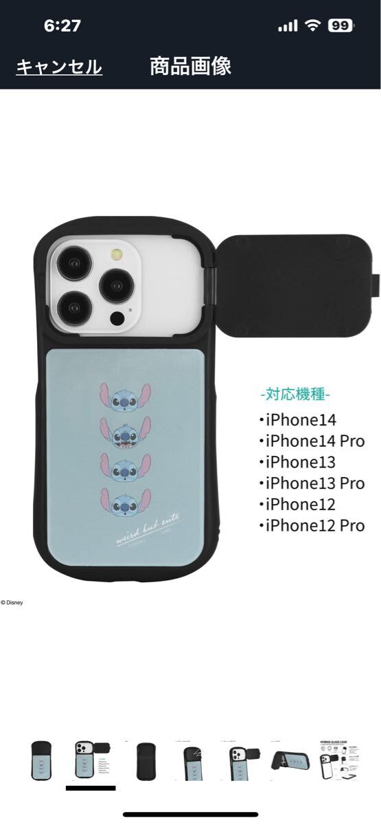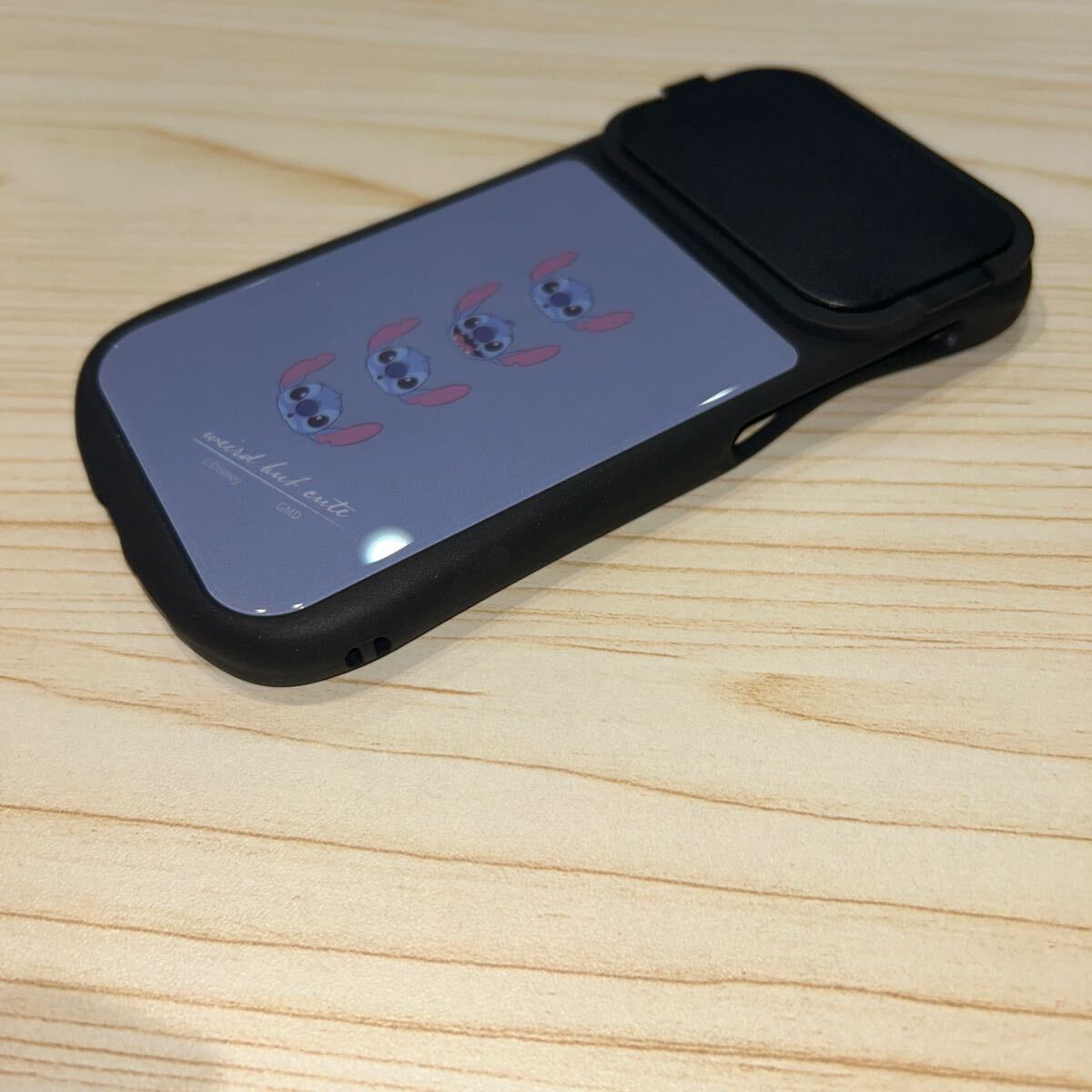 j14 グルマンディーズ ディズニーキャラクター スティッチ iPhone14/14 Pro/13/13 Pro/12 /12Pro 対応 ハイブリッドガラスケース フェイス
