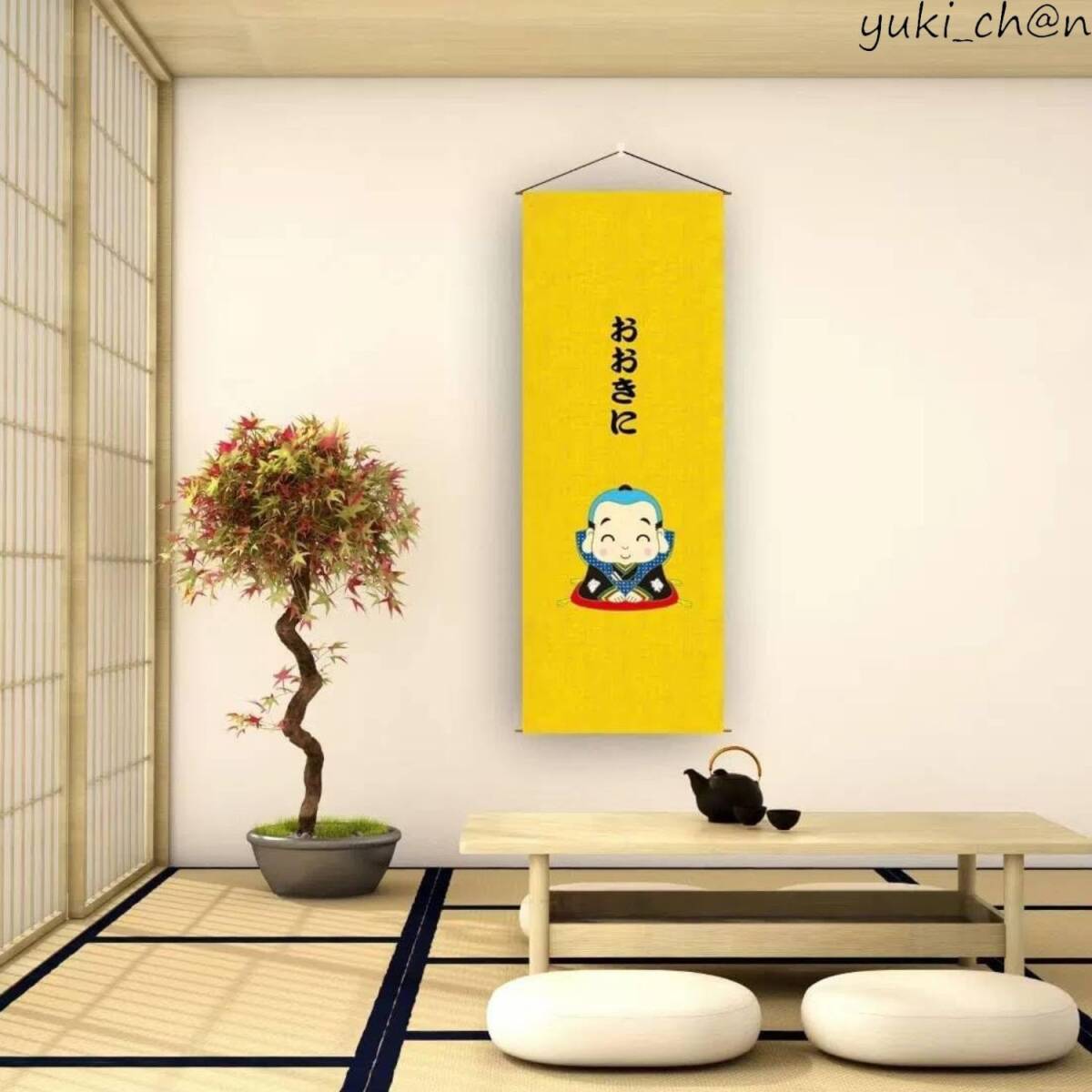 タペストリー 掛け軸 床の間 細タペストリー 和モダン 縦長 掛け物 幅40cmx丈120cm 模様替え 小さなお坊ちゃん インテリアアート 部屋飾り