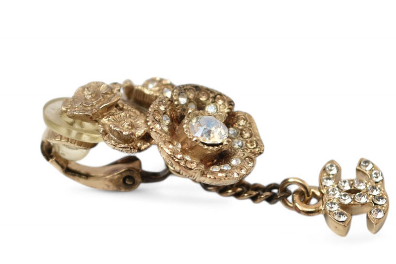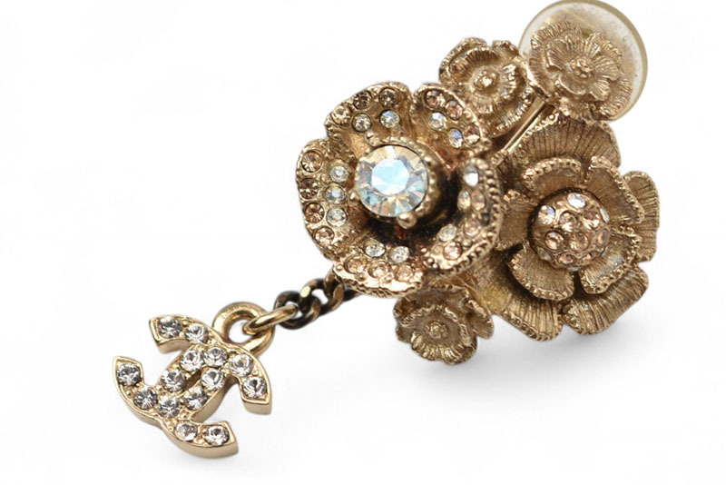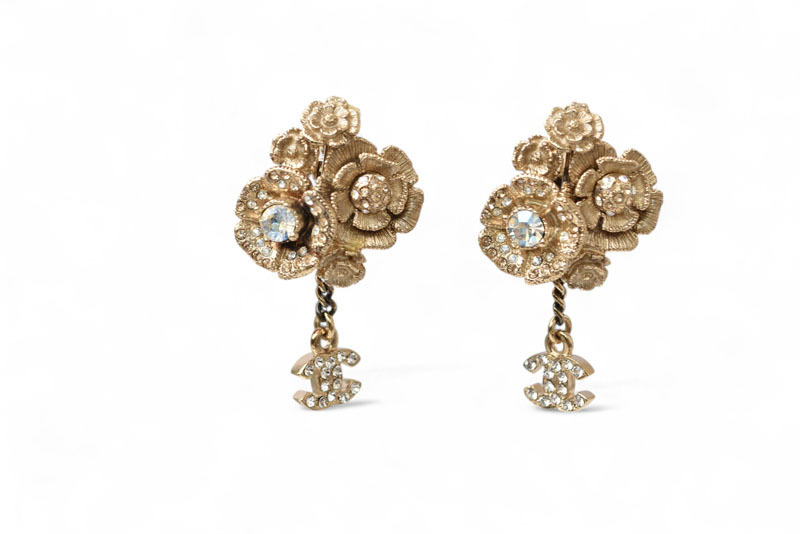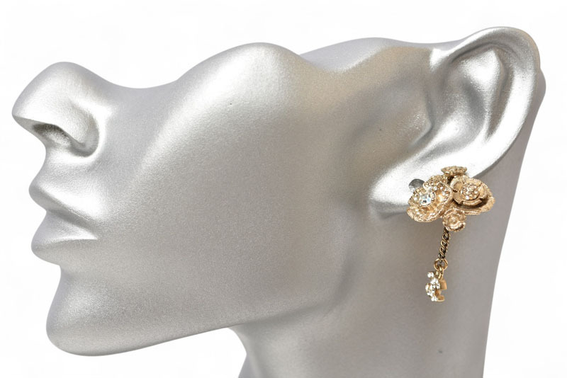 商品説明 | シャネルより、イヤリングです。 カメリアの可憐さと、シャネルの気品をひとつに。 シャネルの象徴ココマーク(CC)に、ブランドを代表する花カメリアを重ねたフェミニンで華やかなイヤリング。ゴールドトーンのメタルにラインストーンが贅沢に散りばめられ、顔まわりを優美に彩ります。クラシカルでありながら、現代的なエレガンスも感じさせる逸品です。 |
