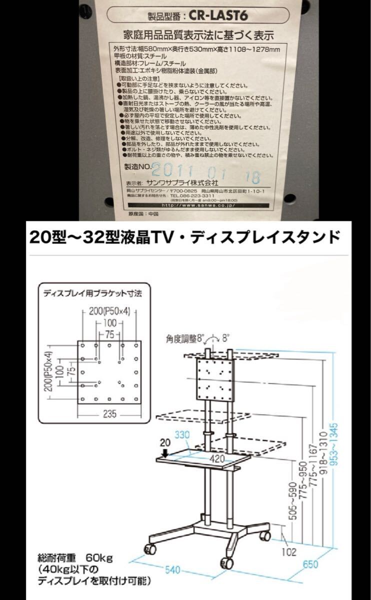 ◯テレビスタンド(サンワサプライ(株) CR-LAST6)