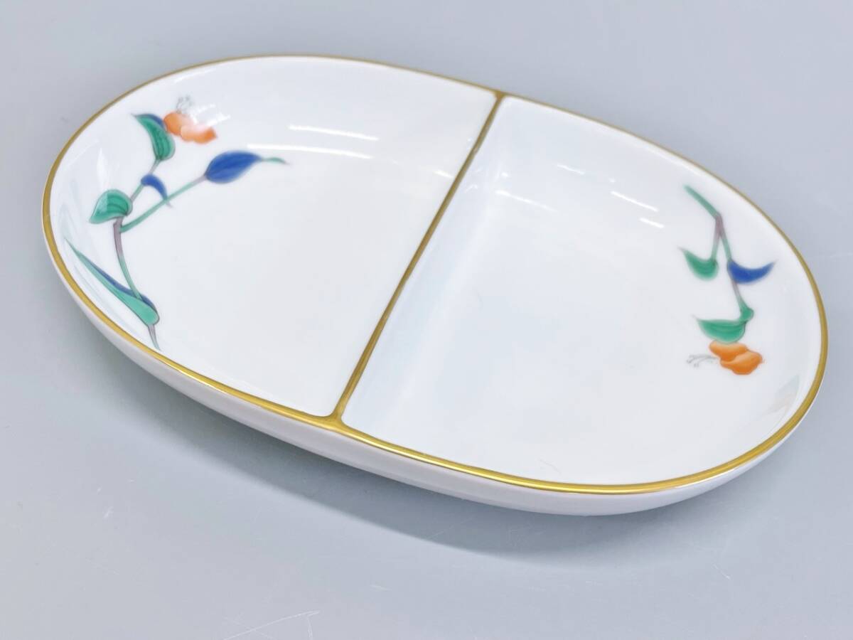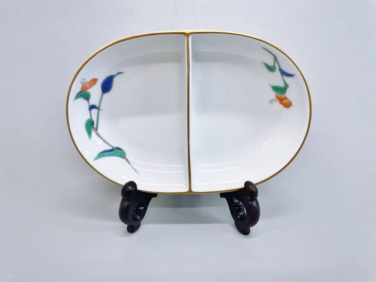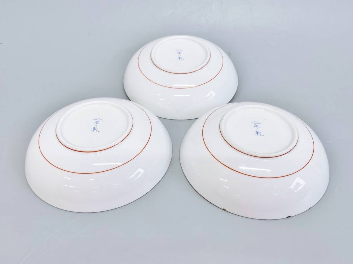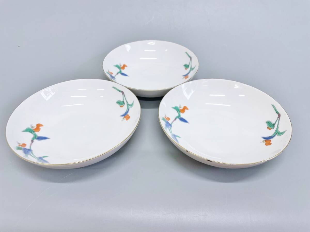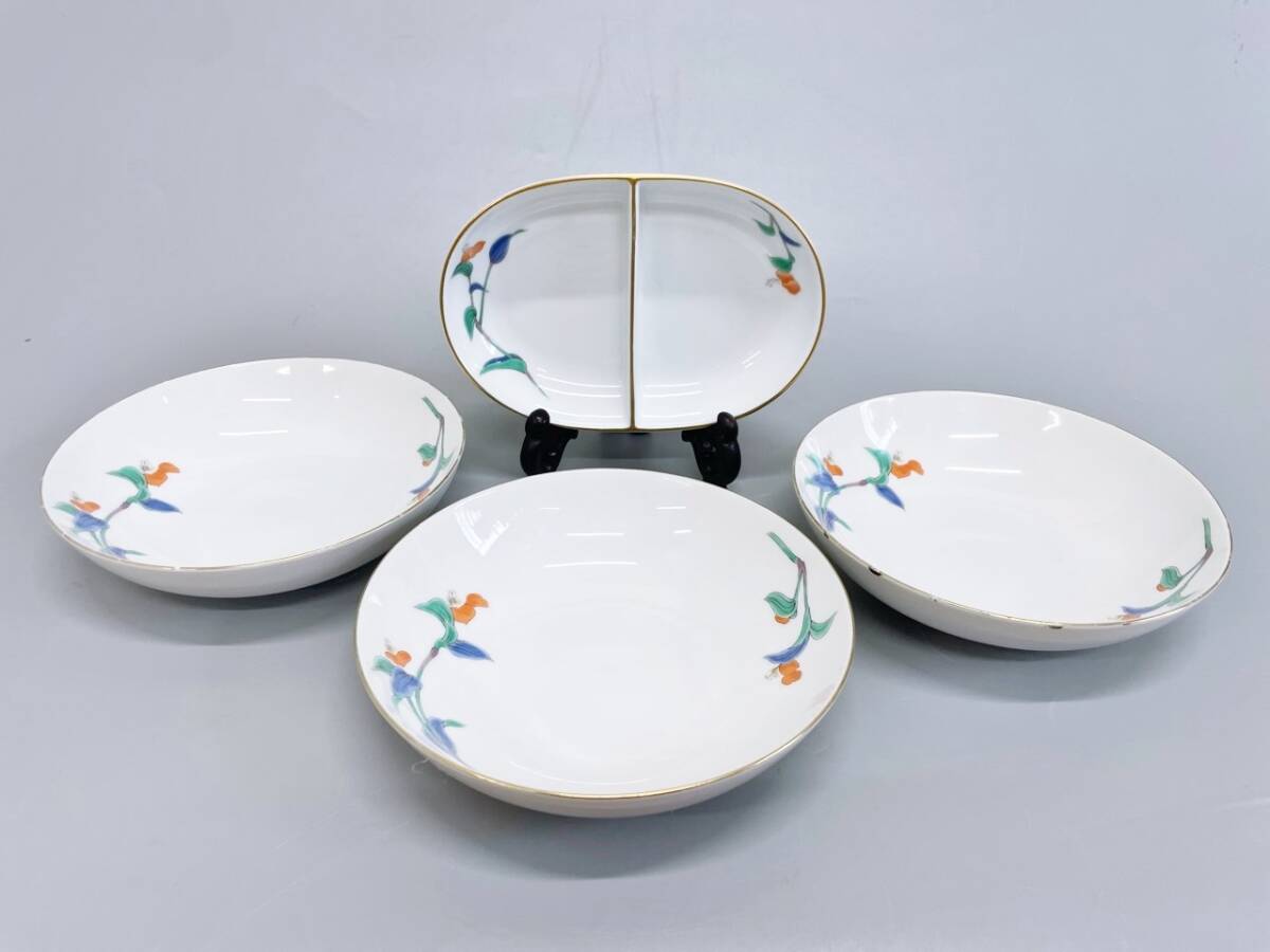 宮内庁御用達 深川製磁 色絵つゆ草文 金彩 深皿 3枚 仕切り皿 1枚 食器 有田焼 陶器