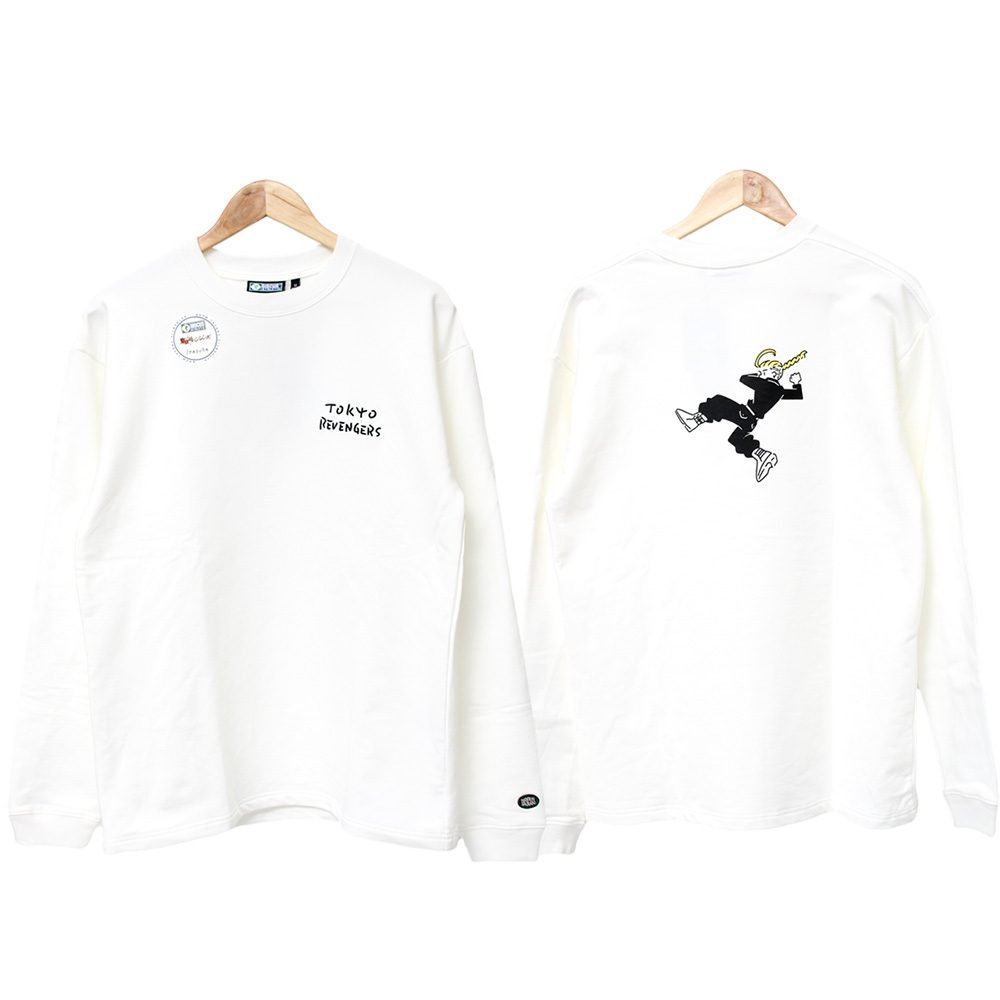 商品名 | 【新品】 L ホワイト×ドラケン 【東京リベンジャーズ × DISCUS】 長袖 Tシャツ メンズ コラボ プリント ITAZURA クルーネック カットソー |