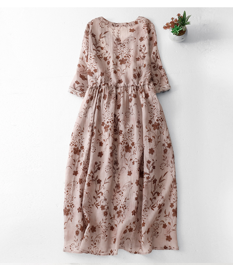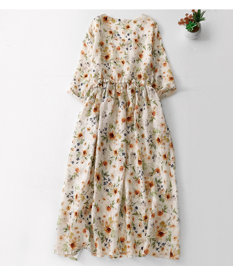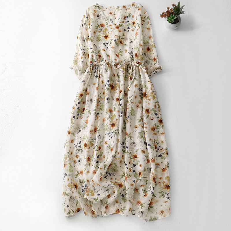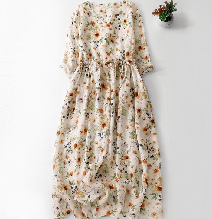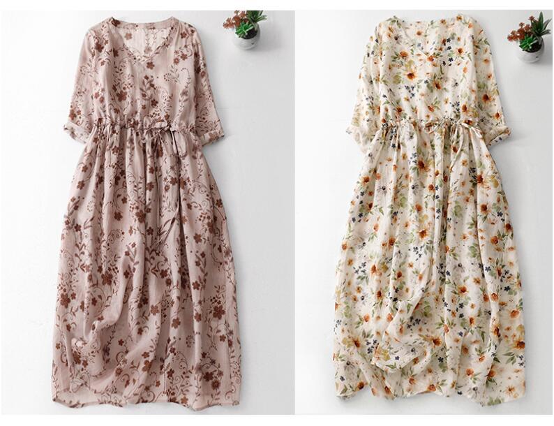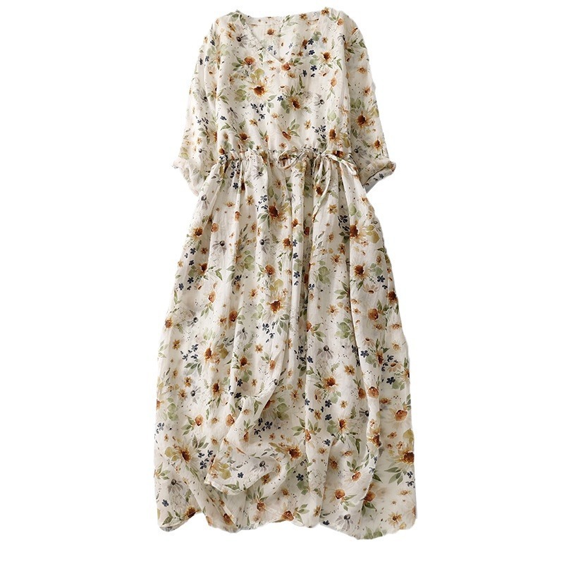 新入荷人気新品オシャレ 花柄 ワンピース 半袖 きれいめ 夏 ロングワンピース 大人可愛い プリント柄 ミモレ丈 ワンピース サイズ選択可