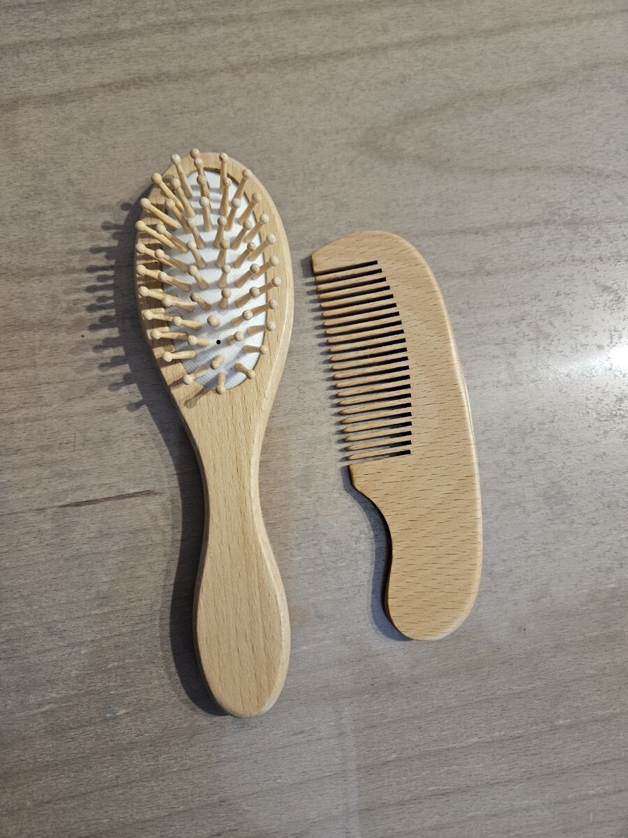 ベービー向けの木製のブラシとコームの2点セットで、ナチュラルなヘアケアを実現。