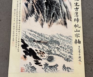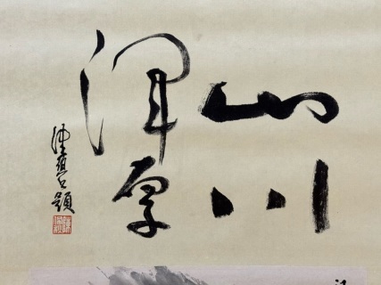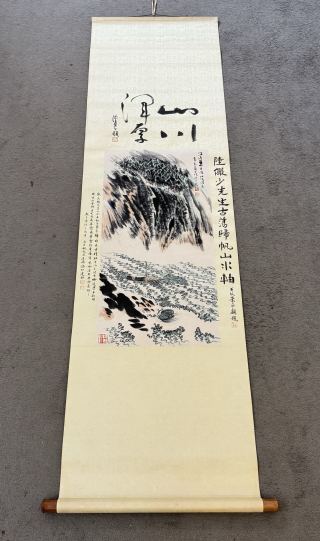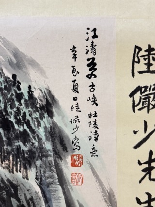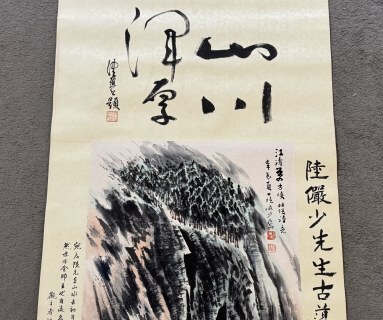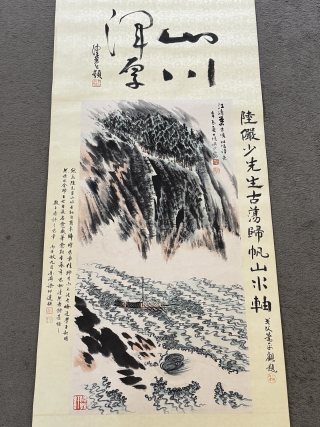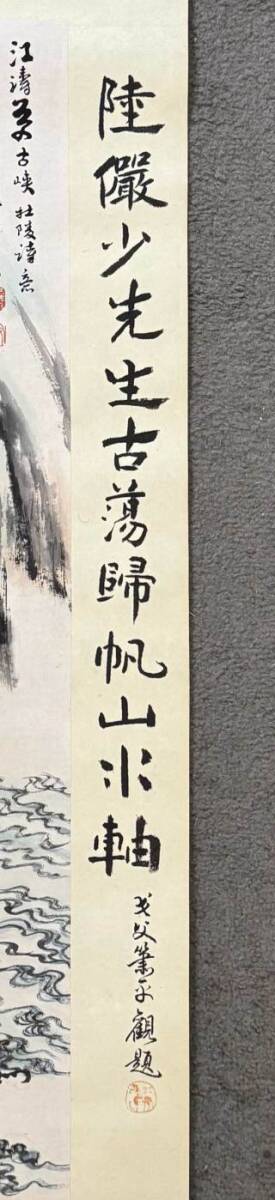 『東京株式会社』 旧家蔵出 中国画 古美術 [陸厳少山水図] 掛け軸 真筆逸品 肉筆保証 中心尺寸71X36cm ABC551