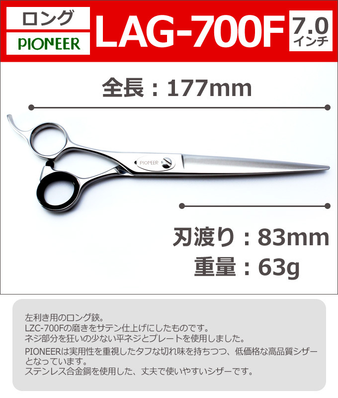 東京理器 パイオニア PIONEER LAG-700F(カット・ロング/7.0インチ)左用ロングシザー![]() ![]() ![]() ![]() ![]()