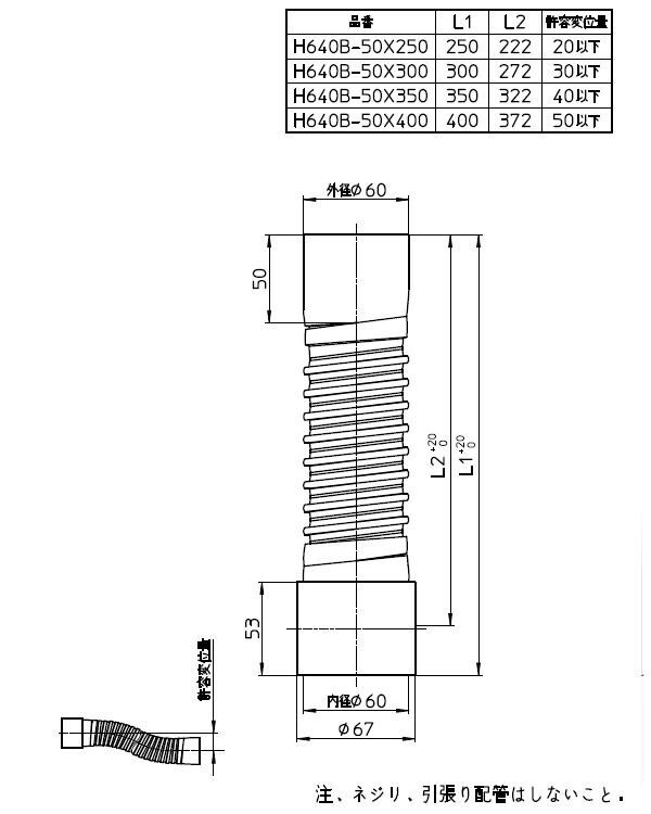 | 呼び径50mm、長さ300mmのパン排水フレキです。 |