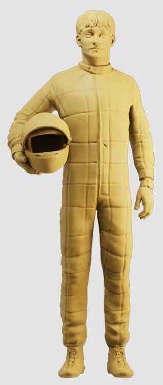 ものすごく小さな品です。64分の1ですから、身長180㎝の人の場合、まっすぐ立って28㎜くらいです。「どうやってこんなに小さく、しかも精巧に作れたの?」と問い合わせましたところ、超高性能の3Dプリンターで一体一体「印刷」したものなのだそうです。「なるほど」と思いました。「一体一体」ですから、製作にはそれなりの時間がかかり、それでこんなに小さいのに結構高いんですね。(ホワイトモデルですので、時間のある方はご自分で着色して完成させてみてはいかがでしょうか?)