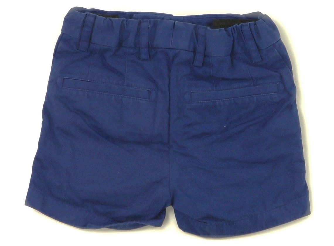 チノパン生地。ウエストはゴム入りで調整ボタン付き。前ファスナー開きです。ウエストやポケット入り口に白っぽさが見られます。普段着や外遊び用にいかがでしょうか。