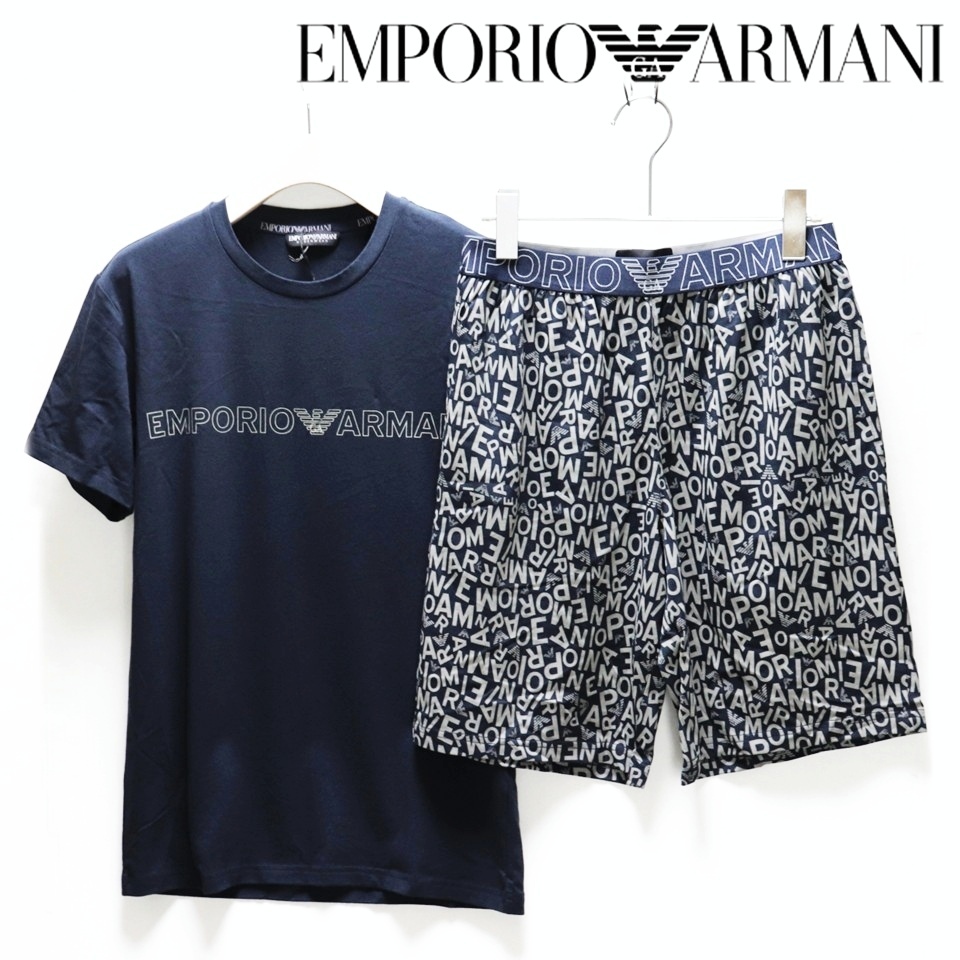 《EMPORIO ARMANI エンポリオアルマーニ》新品 伸縮性あり Tシャツ+ロゴ総柄ショートパンツ 上下セット セットアップ インポートS(S〜M)S1926 |