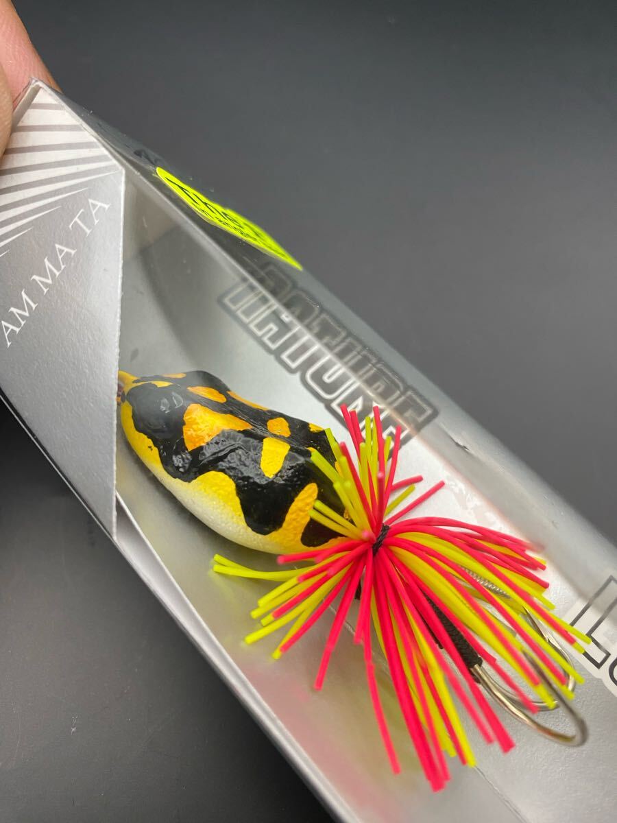 アランカルアーズというタイのルアーのようです 調べてもあまり情報が無く、パッケージも捨ててしまったので正確なところはよくわかりません フロッグですがハードボディで、コトコトとラトルが入っています 重さは約 6g