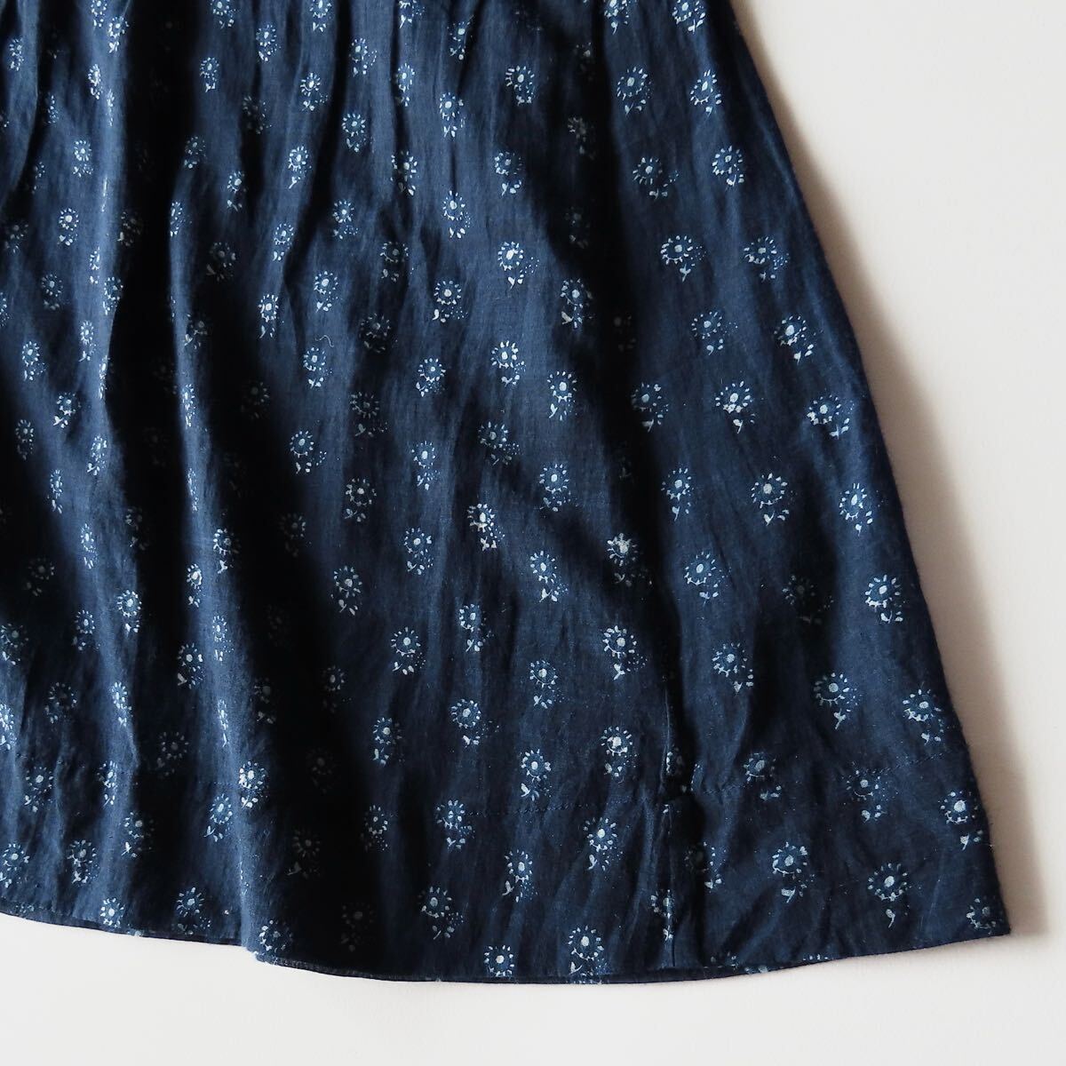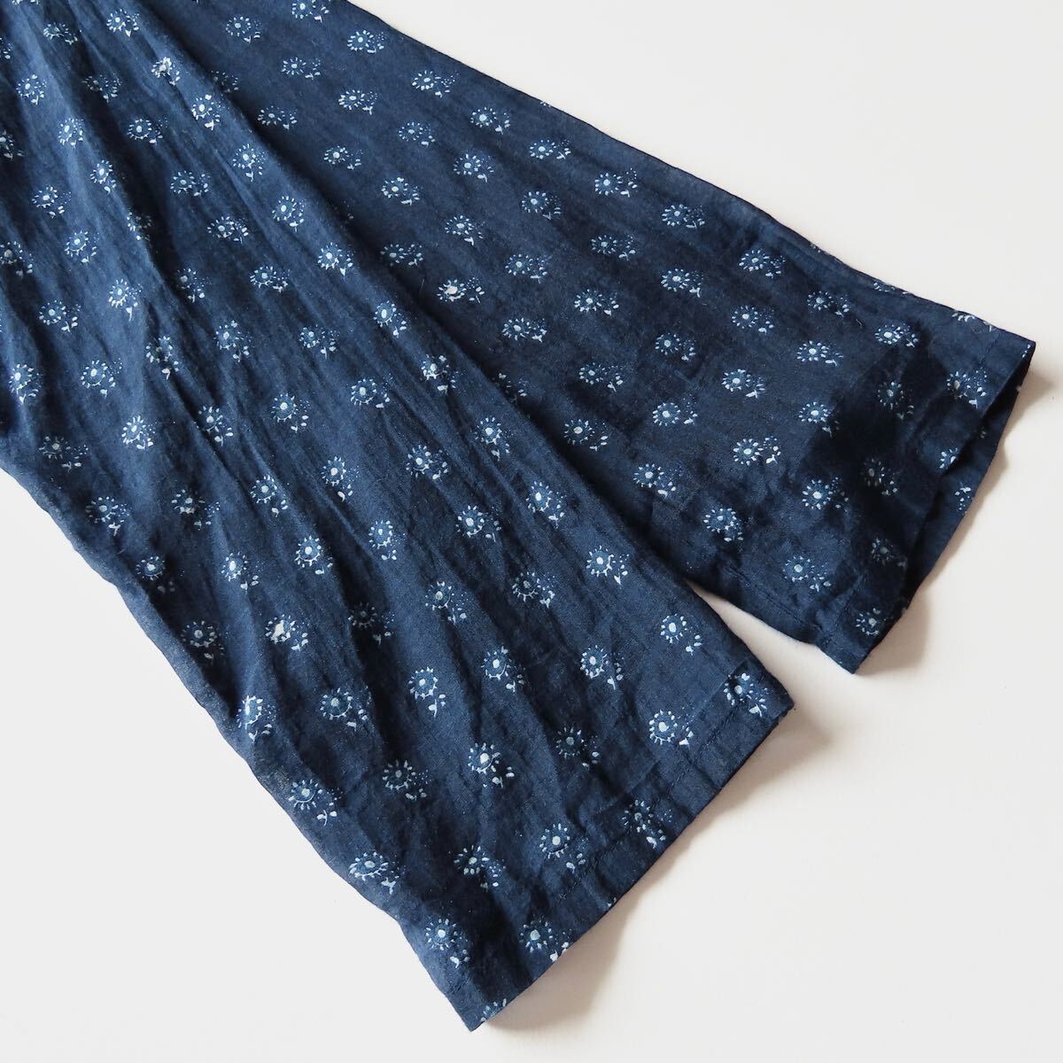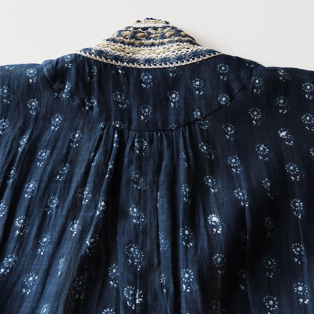 小紋柄の手捺染とレースが特徴的のロングワンピース。