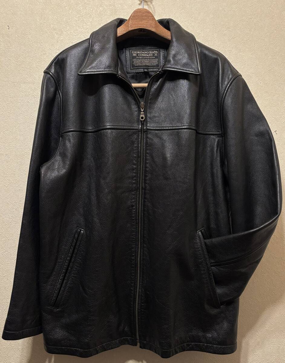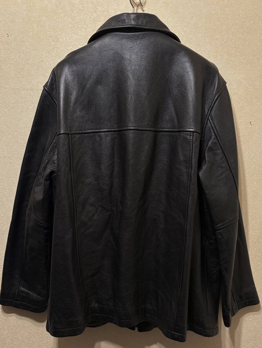 極上シボ革90sオールド肉厚レザー本革ジャケットXLブラック黒フルジップ本皮トラッカー皮カーコート90年代ビンテージ