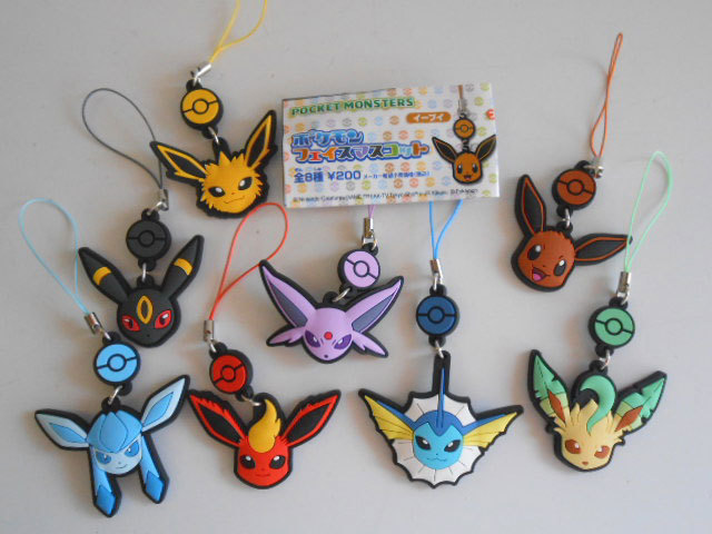 1.イーブイ 2.ブースター 3.シャワーズ 4.サンダース 5.エーフィ 6.ブラッキー 7.リーフィア 8.グレイシア ◇フェイス型マスコットはラバー仕様! |