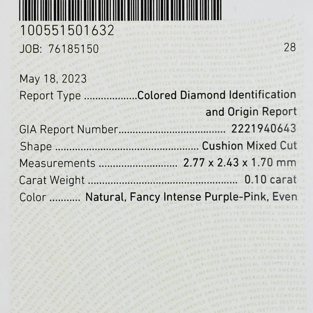 カラー:FANCY INTENSE PURPLE PINK