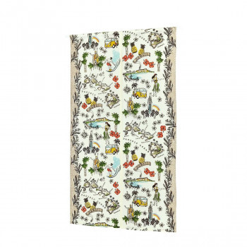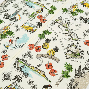 | 賑やかで楽しい雰囲気のレトロなハワイアン柄がプリントされたのれん。細部にわたるイラストが魅力的で、一つ一つ楽しみながら見ることができます。明るいハワイアンテイストが、お部屋を爽やかに演出します。 【布製品お取り扱いについて】 織りから染色まで昔ながらの伝統的手法で作られております。 手作業の工程が多いため、日本の機械工業製品と比べると一見粗野に感じられる部分も見受けられます。 生産現場の監督者、職人たちと話し合い、生産工程上避けられないものに関しましては、正規品として取り扱いさせていただいております。 現地の職人たちがこつこつと手作業で作り上げた布製品の特性をご理解の上、人の手が作り出す表情の違い、素朴な風合いをお楽しみください。 【お手入れ方法】 洗濯時に色落ちする場合がございますので、漂白剤及び漂白剤入りの洗剤のご使用は避け、他の物と分けて単独でお洗いください。 商品によっては2種類以上の繊維で織りこまれたものや、刺繍・ミラーなどを施しているものがあります。洗濯表示をご確認ください。 長時間濡れたまま放置すると移染する恐れがございます。洗濯後は形を整えてすぐに陰干ししてください。 生地の特性上、洗濯後多少縮むことがございます。 手作り品の為、サイズが表示と異なる場合がございます。 インド綿特有のにおいが気になる方は、風通しの良い場所で陰干ししてからご使用ください。 【色落ち】 インド綿製品は色落ちしやすいという特性があります。摩擦や水濡れ、汗によって色が移る可能性があります。 雨天でのご使用、薄い色の衣服、バッグ、ソファー、車のシート等への色移りには十分ご注意ください。 【色差】 染色後の乾燥の際に天候や湿度の変化によって、1枚1枚の発色に差が出る場合がございます。 |