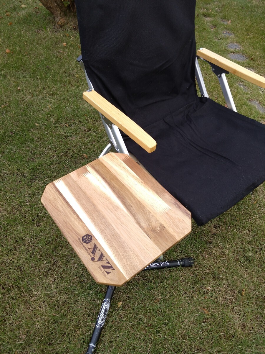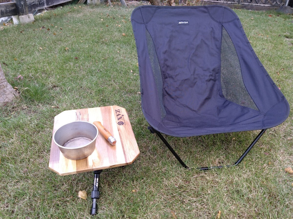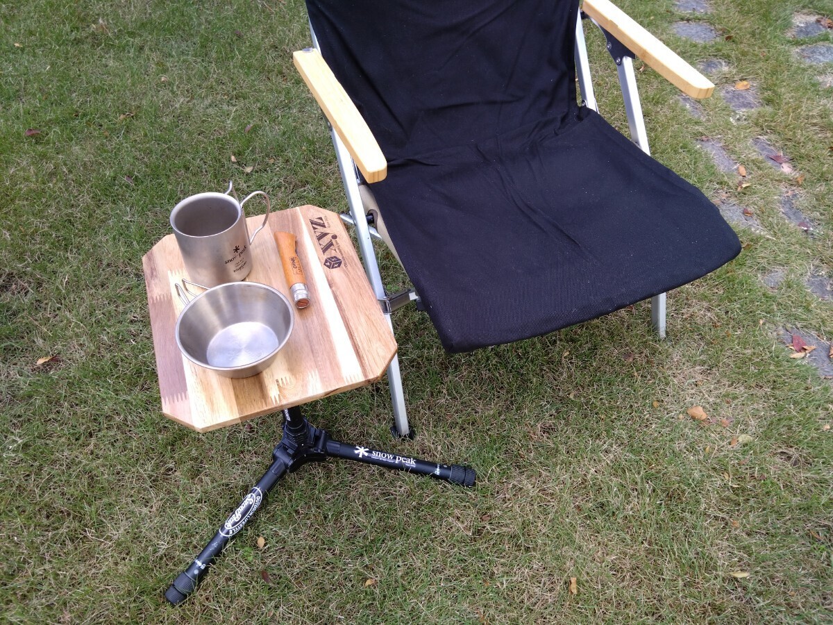 キャンプチェアの横に置くと、飲み物や小物を手元に置けてとても便利になります。