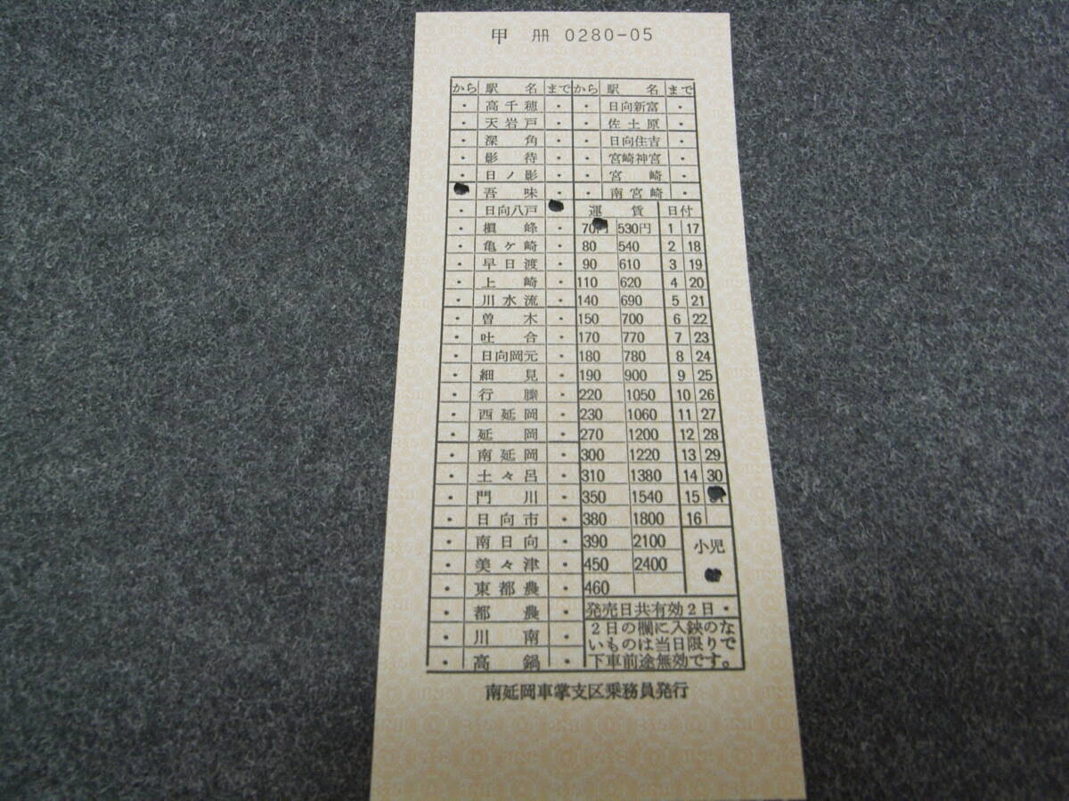 車内乗車券 南延岡車掌支区乗務員発行 0280-05 高千穂線用 車内補充券