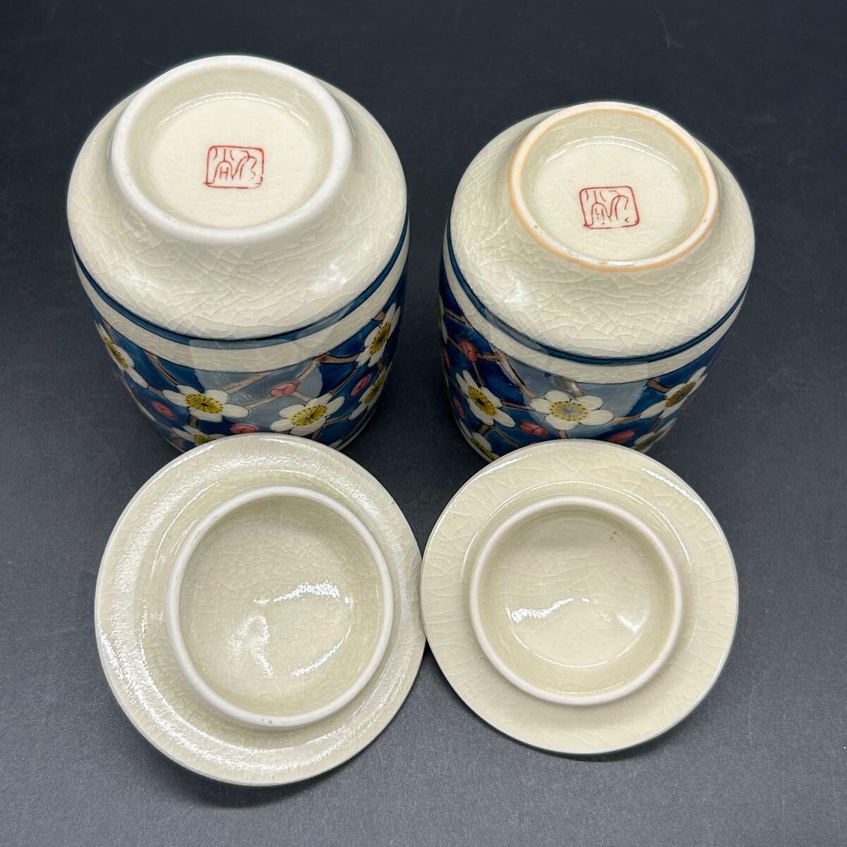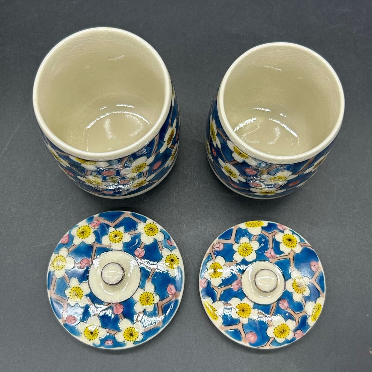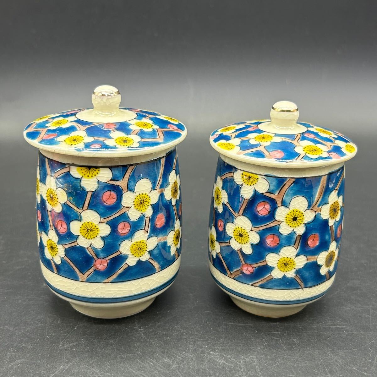 九谷焼 蓋付組湯呑 光琳梅 蓋付 組湯呑 茶器 ネ15