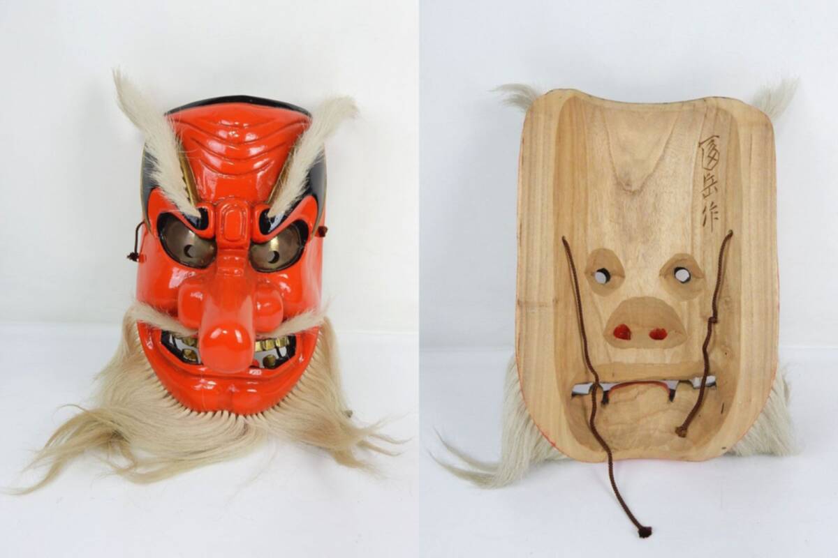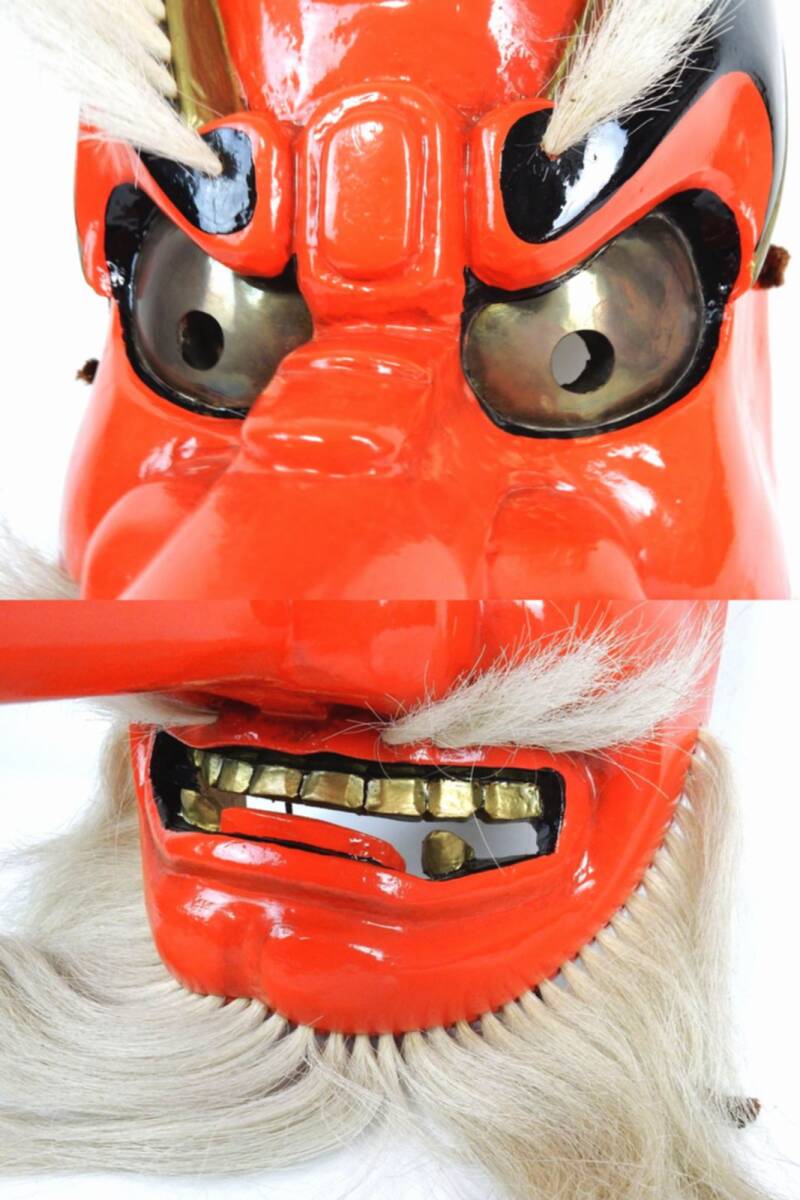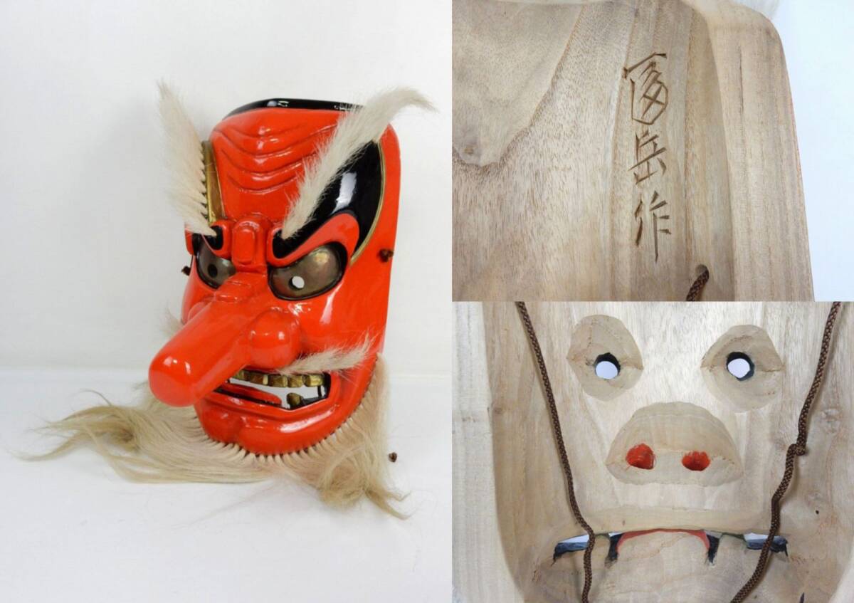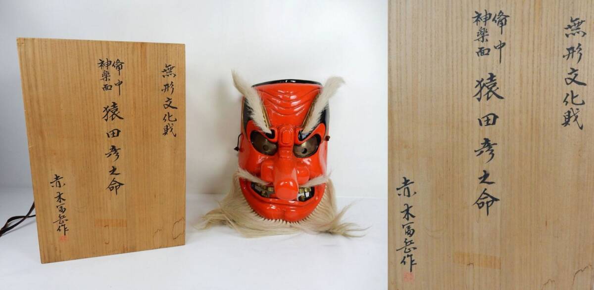 【赤木冨岳 作】 備中神楽面 猿田彦之命 重要無形文化財 天狗面 共箱付き 中古品 JUNK 現状渡し 一切返品不可で!