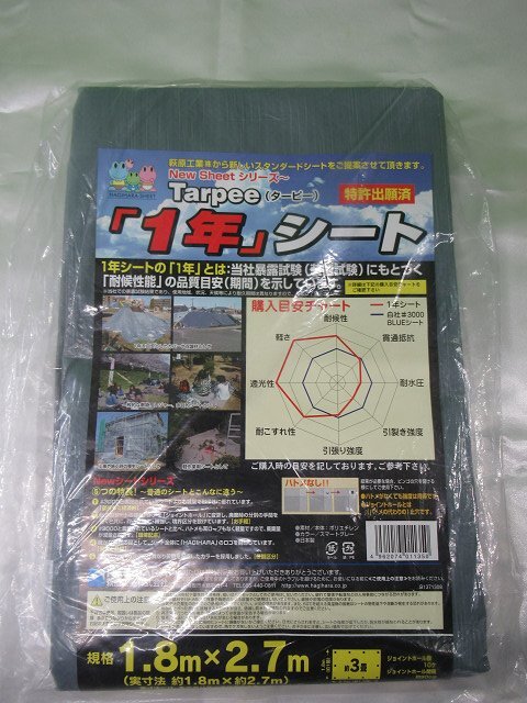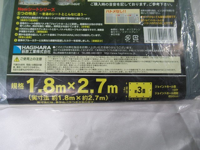 未使用 ターピー 1年シート スマートグレー 1.8×2.7m 約3畳 養生カバー 日よけ Tarpee 萩原工業