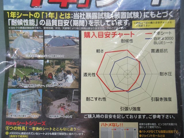 ◆軽量長持ち ♯3000と表記のブルーシートよりも軽量で、約1年の耐候性があります。
