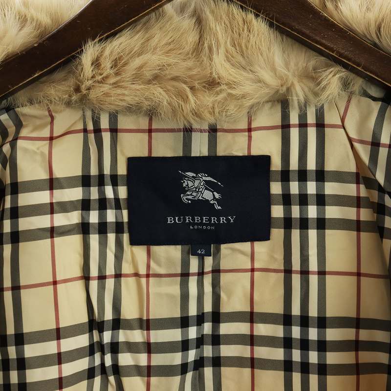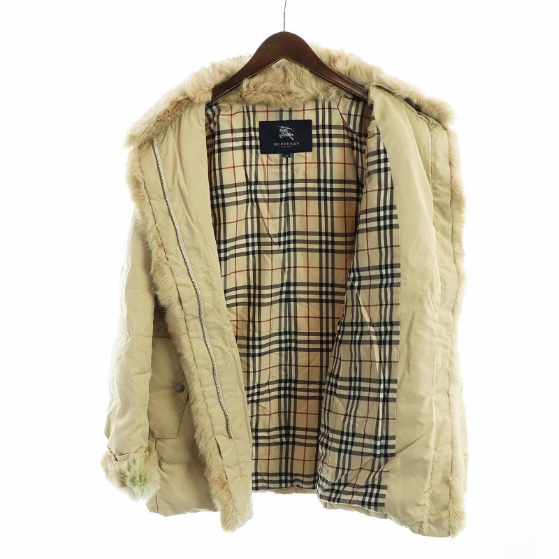 バーバリー ロンドン BURBERRY LONDON ダウンジャケット 長袖 ミドル ロゴ ラビットファー ノバチェック 42 L ベージュ