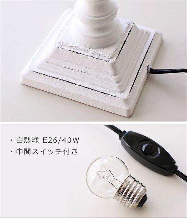 | ウッドのクリ棒の支柱が ノスタルジックな雰囲気のテーブルランプ クラシックな形がオシャレなランプは コンソールやサイドテーブルの上で フォトフレームや雑貨と一緒に置いて オブジェを兼ねた間接照明として使っても素敵です シェードからこぼれる光が 柔らかくあたたかい雰囲気を インテリアにプラスしてくれます 商品名 : クラシックなテーブルランプ レリーフブラン 商品番号 : scc8017 全体のサイズ(cm) : 直径20×高さ37 台座サイズ : 9.5cm角 シェードサイズ : 直径20×高さ12.5 電球 : E26 40W(LED交換対応) コード長 : 155cm(本体から中間スイッチまで46cm) 材質 : 本体)木 MDF シェード)ポリエステルコットン 重量 : 490g 生産国 : 中国 ※お客様による簡単なセッティングです(電球付き) ※天然木使用の為、個体差のある商品です ※シェードや本体(支柱)の傾き、シェードの僅かな汚れや布地の細断部分の切り残し、引っ掛き傷等がありますが ※製造元より良品の判断のもと販売しております。予めご理解の上ご検討ください ※ディスプレイによる色の違いはご了承下さい |