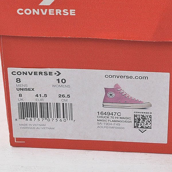 未使用 コンバース CONVERSE CHUCK TAYLOR ALL STAR 70 HI チャックテイラー オールスター ハイカット 164947C 26.5cm ピンク |