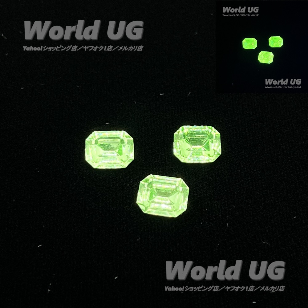 (1)UV-LEDを照射するとi-Phoneで撮影できるほど緑色に発光する(UV-蛍光灯だとウランガラスでなくても光るためUV-LEDを使用)