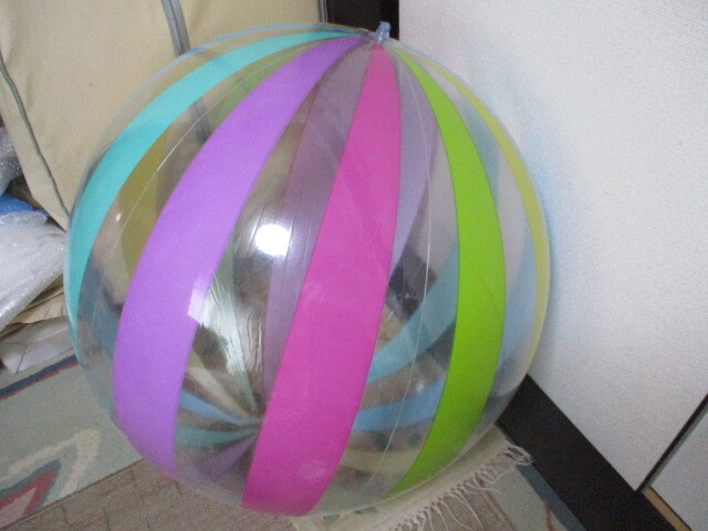 巨大化したストライプ柄ビーチボールです,膨らましサイズは約80Cmになります