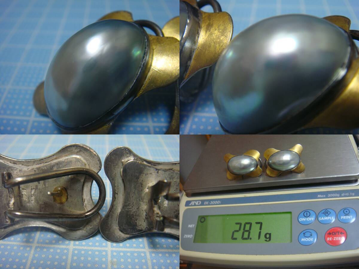 ◆大きなパール? 真珠? ピアス SILVER 純金 刻印◆