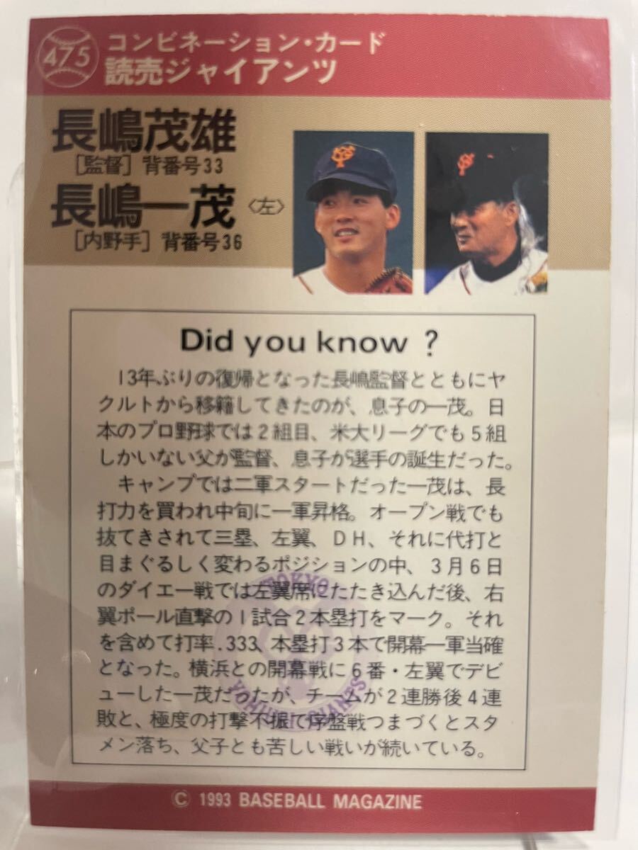 長嶋茂雄 長嶋一茂 BBM 1993 475 読売ジャイアンツ 巨人 ベースボールマガジン