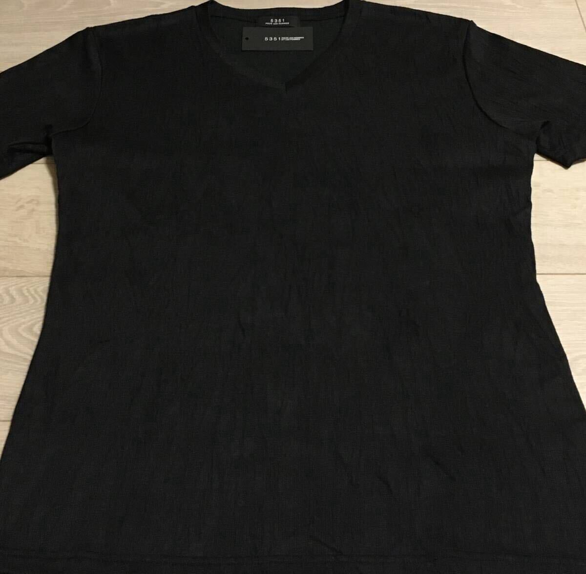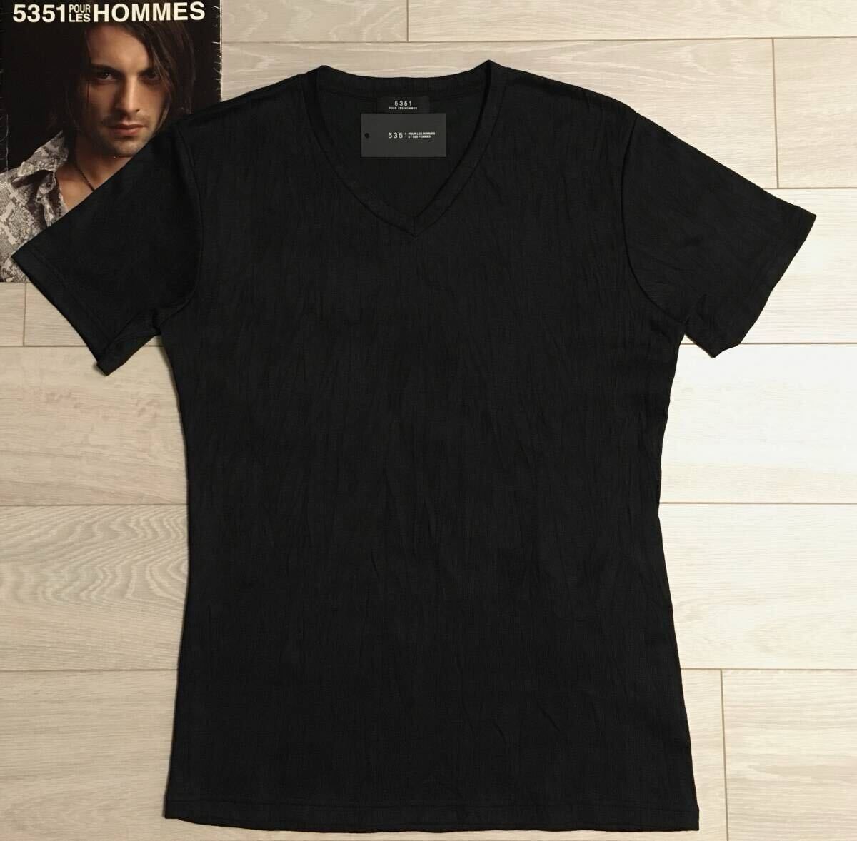 アイテム 5351プールオム最高級漆黒クラッシュリブ織Vネックカットソー【新品】