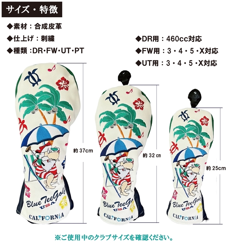 □②DR-ブルーティーゴルフ 【サンタ オン ザビーチ】ドライバー用ヘッドカバーBLUE TEE GOLF SHC-001 送料無料