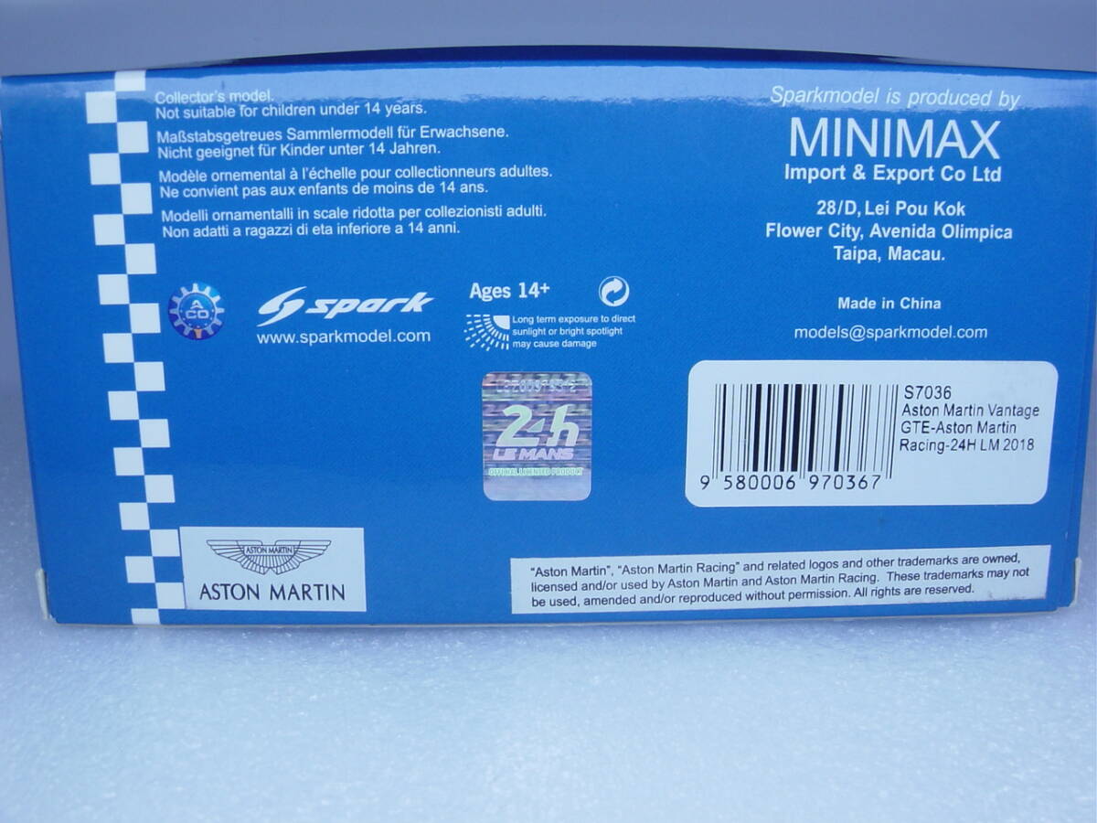 spark 1/43 Aston Martin Vantage GTE 24H Le Mans 2018 GTE Pro Class #95 M.Sorensen/N.Thiim/D.Turner アストンマーティン ル・マン