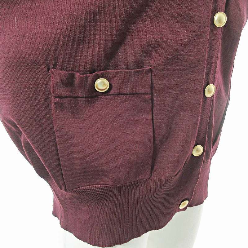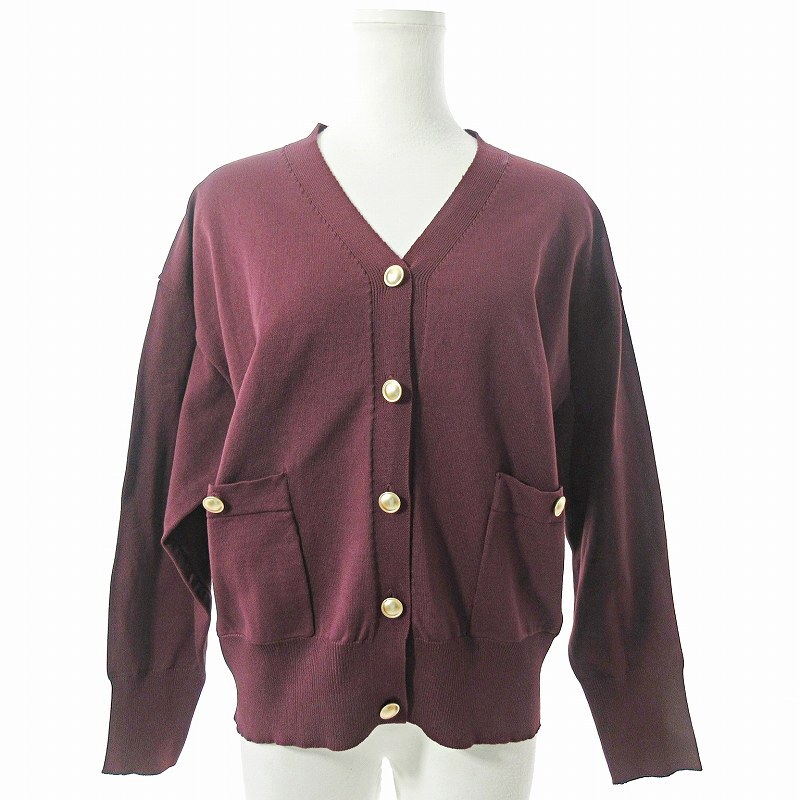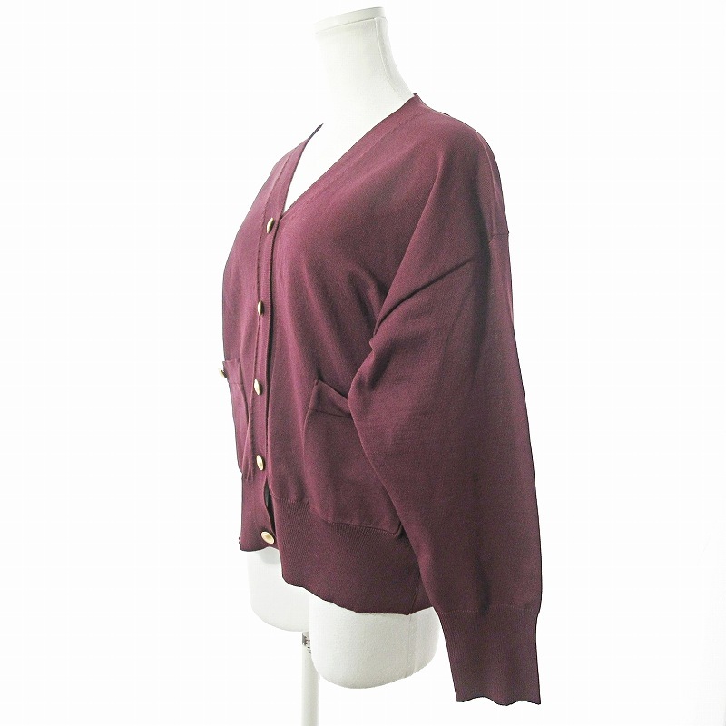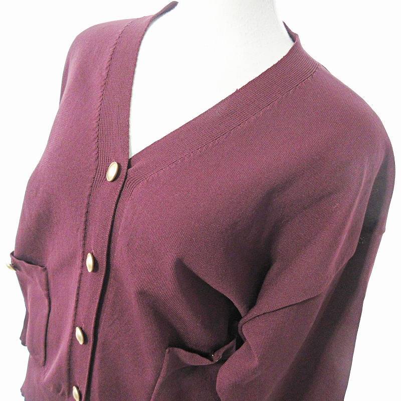 エムケー ミッシェルクラン MK MICHEL KLEIN 美品 近年 スポンディッシュニットカーディガン 長袖 金釦 38 ワイン ボルドー 臙脂 0526