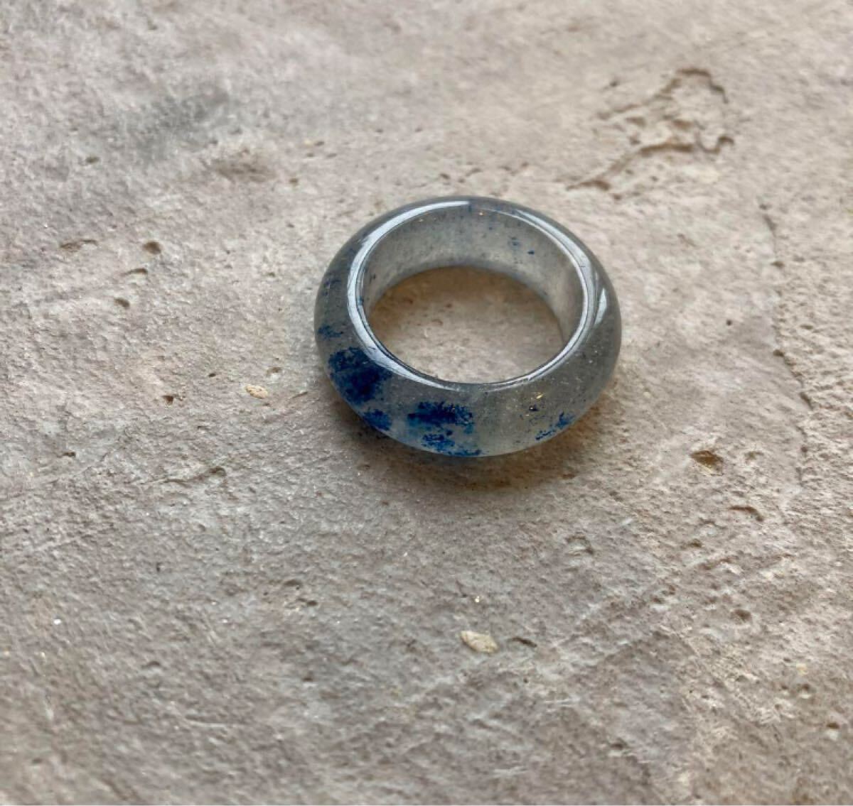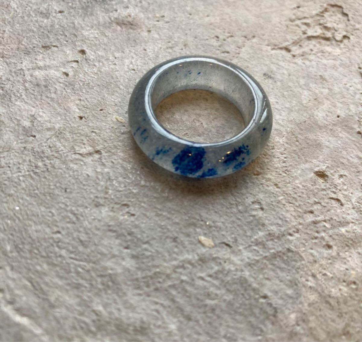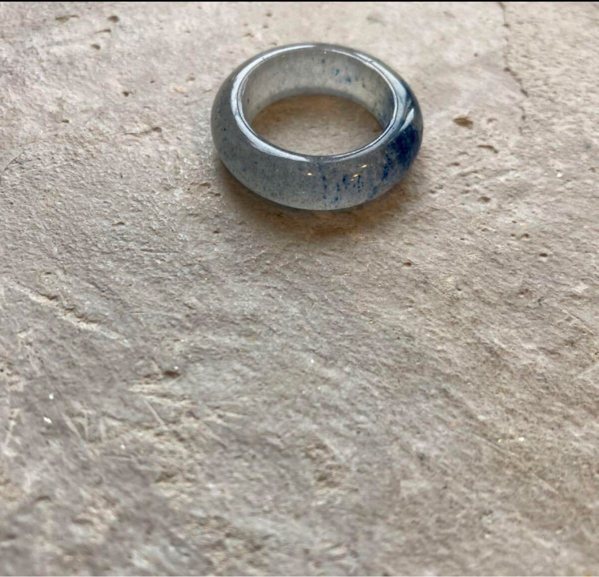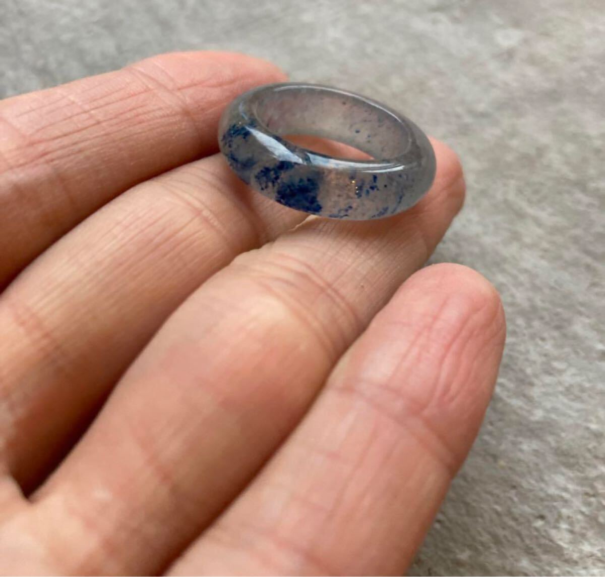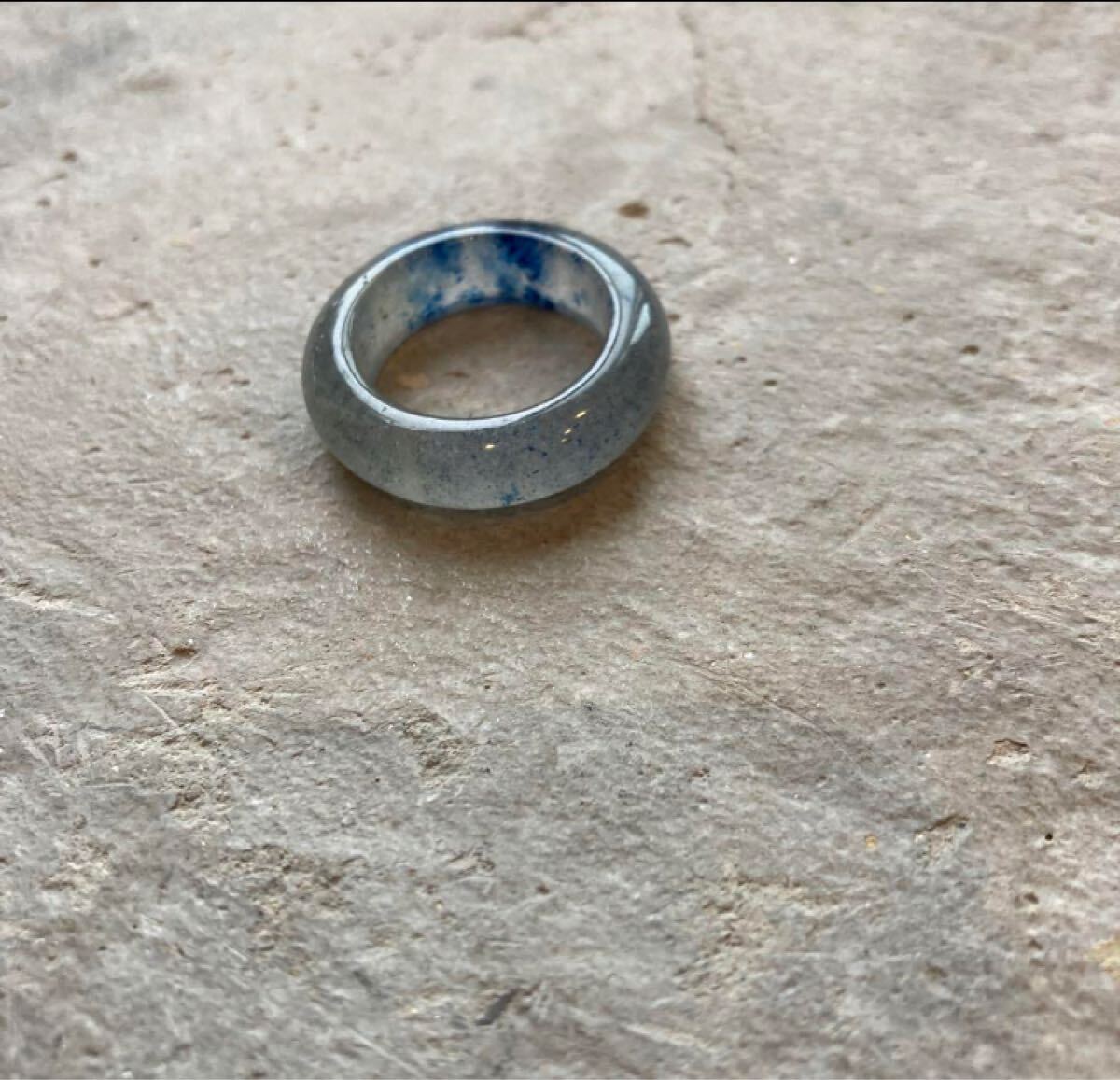 デュモルチェライト イン クォーツのくりぬきリングです。