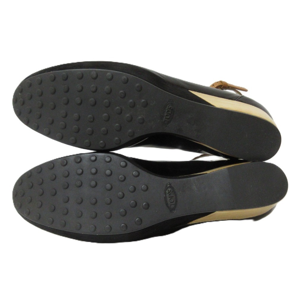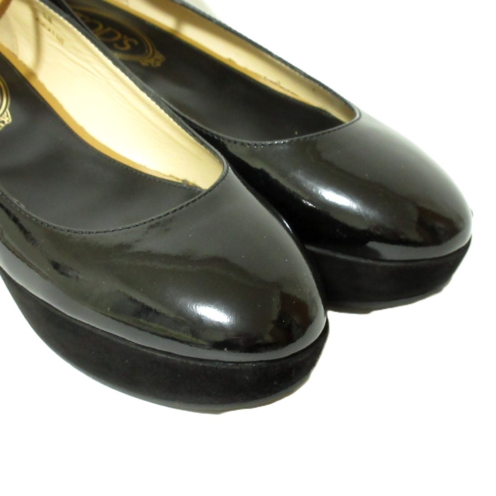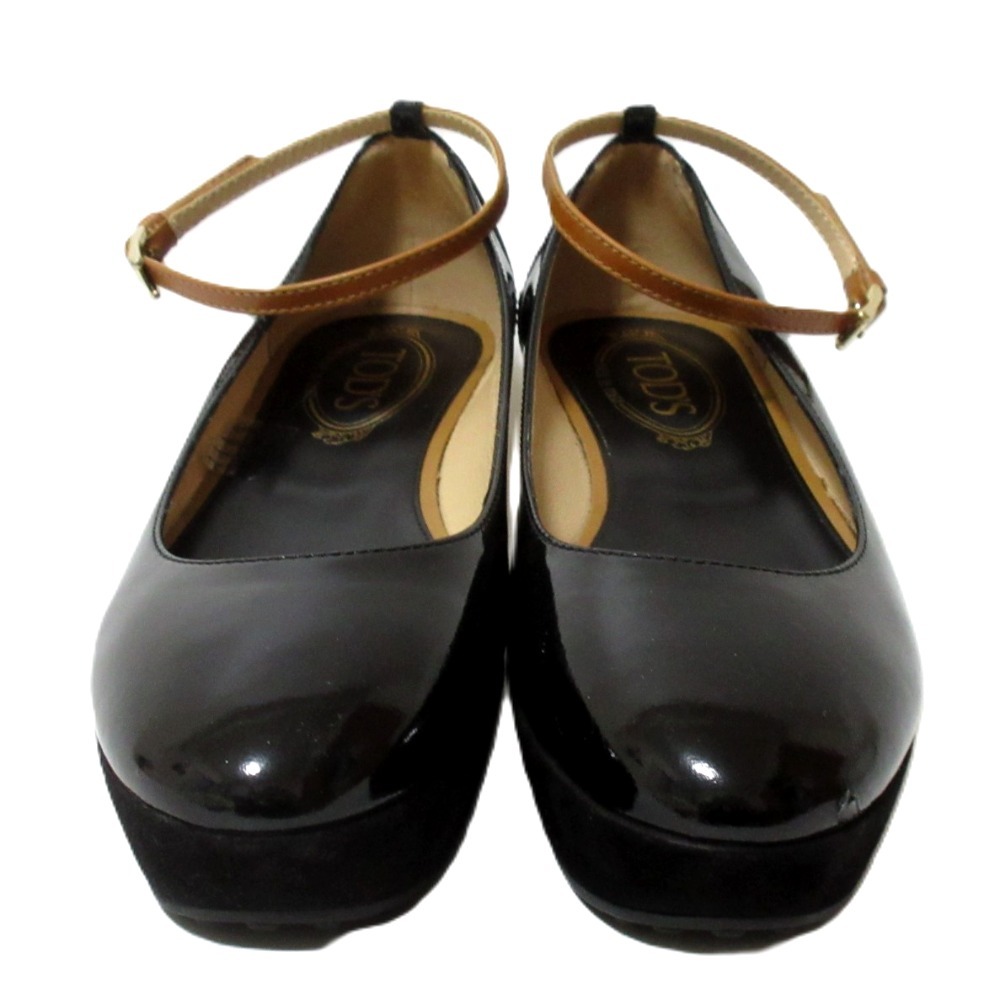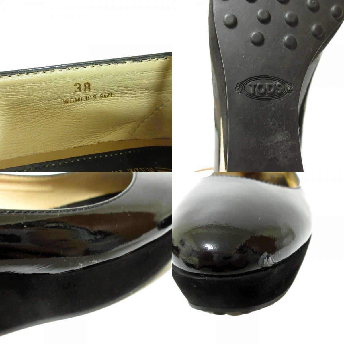 良品 TOD'S トッズ パテントレザー プラットフォーム 厚底 アンクルストラップ パンプス 38 約25cm ブラック×ブラウン