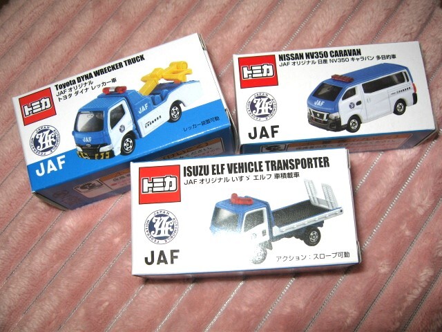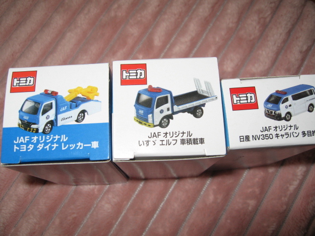 ◆3台◆レア◆トミカ◆特注◆JAFオリジナル◆三菱ふそう キャンター レッカー車・日産 NV350 キャラバン・いすゞ エルフ 積載車◆