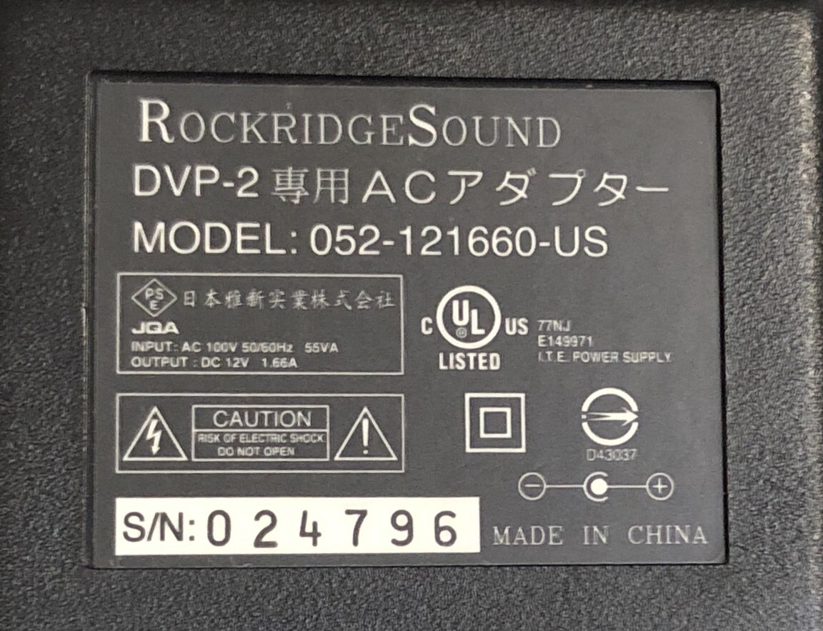 ROCKRIDGESOUND DVP-2 専用 アダプタ 052-121660-US 12V 1.66A