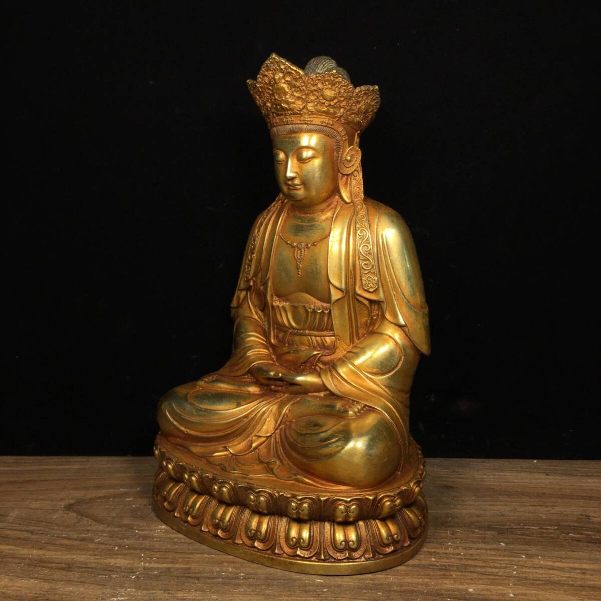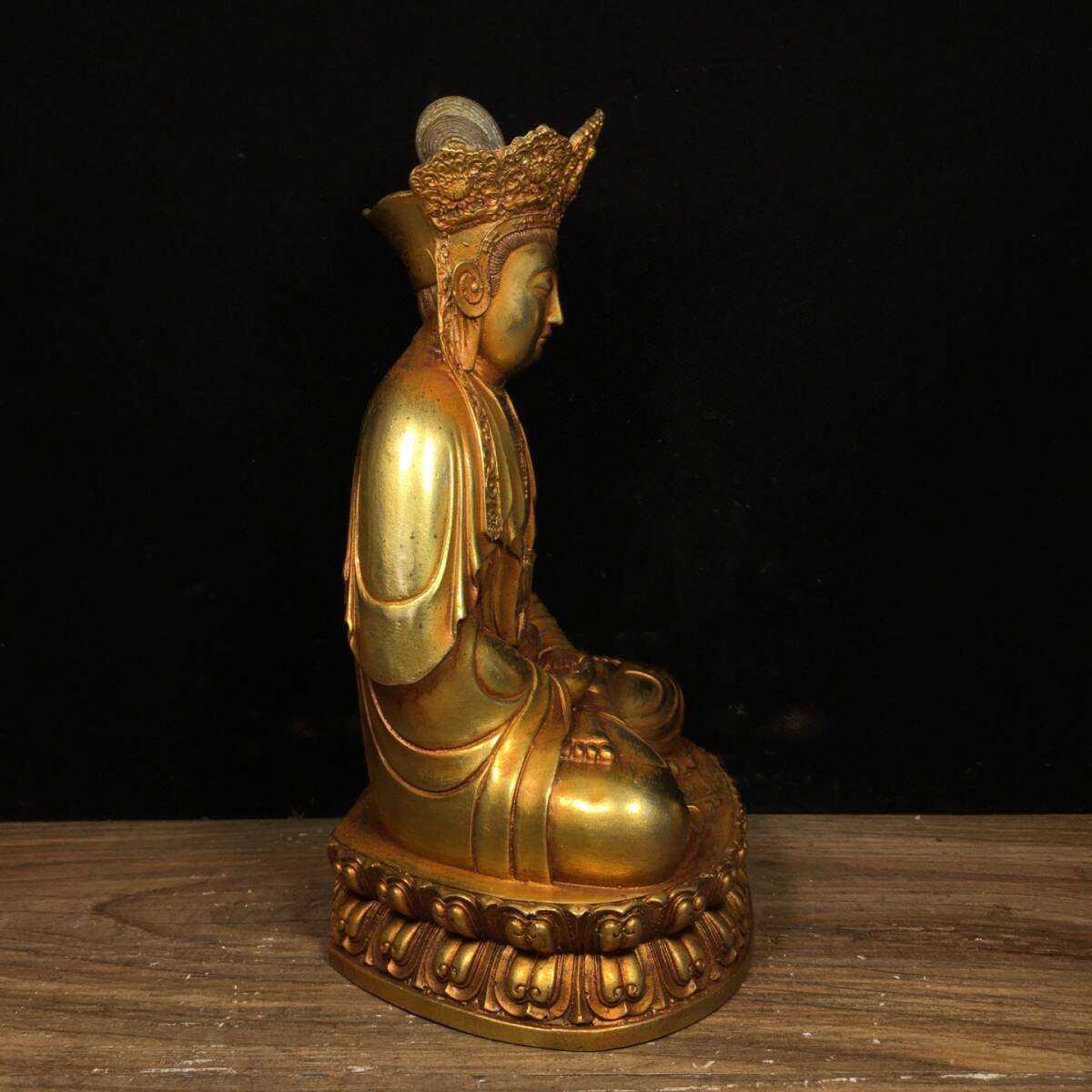 清時代 古銅流金彫 観音 仏像 仏教古美術 供奉仏像 文案 置物 置物擺件 時代物 古董品 骨董 旧家藏出 唐物 中国古玩 古美術 稀少珍品