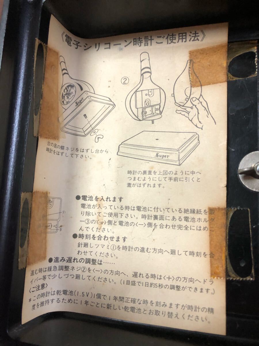 単3の電池を入れると秒針がカチカチと動きますが、なんとも頼りない動きです。分針も進みます。