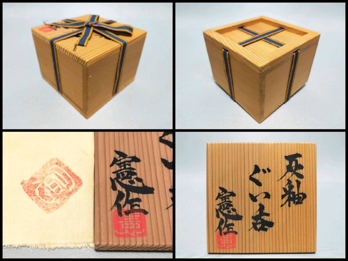 FT29 酒器 東憲 造 灰釉 ぐい呑 片身替り 盃 共布・共箱
