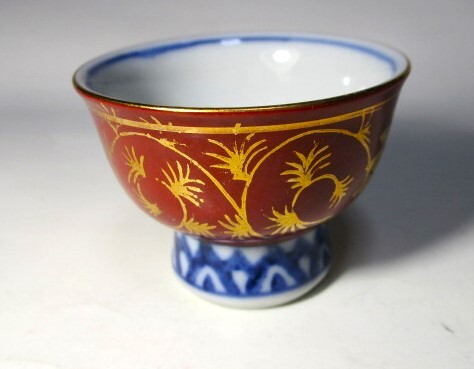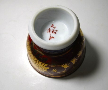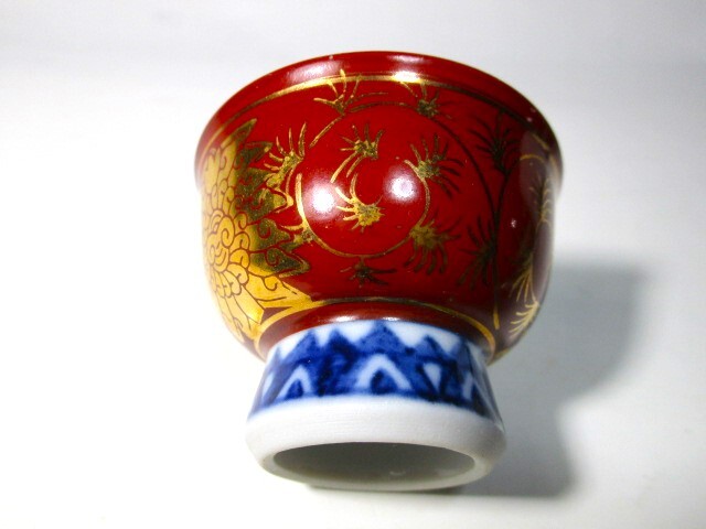 珍しい金襴手高台の趣ある九谷洋三の酒盃1客です。